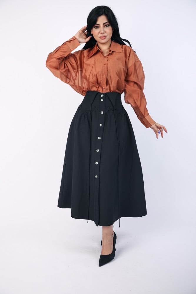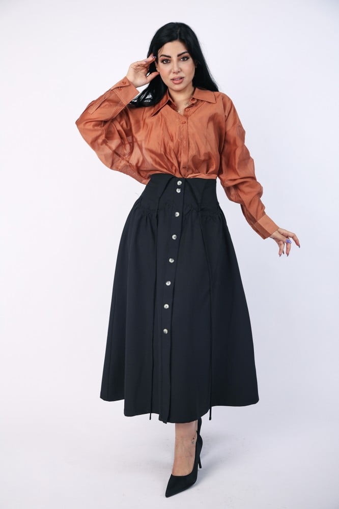 بلوزة كتان برتقالي غامق بأكمام طويلة