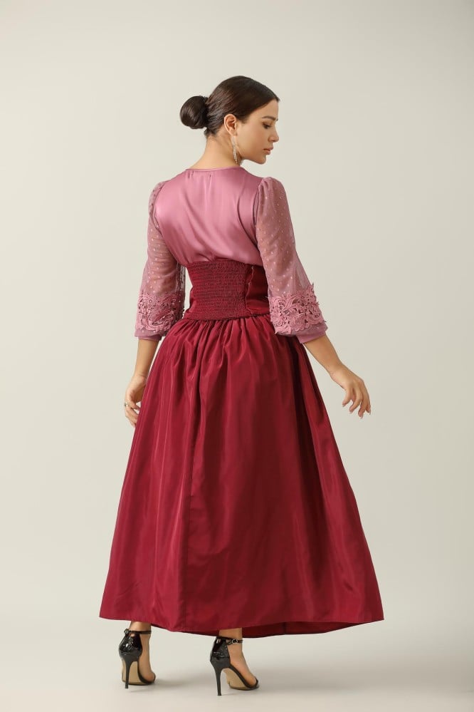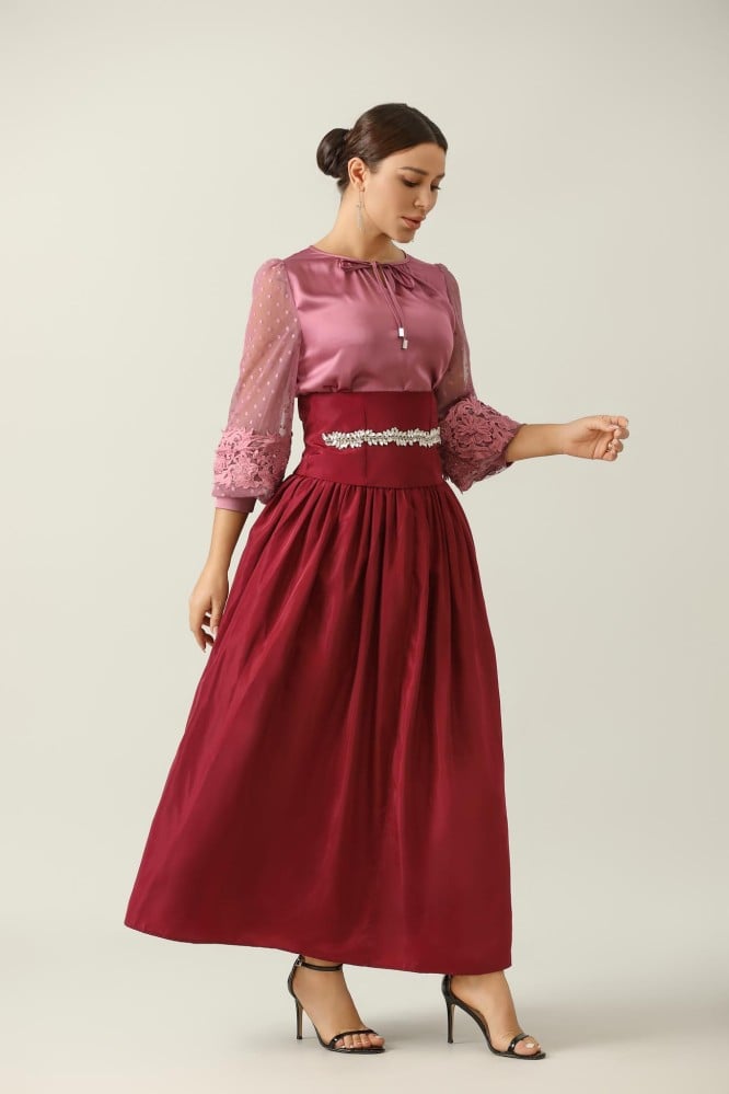 بلوزة كريب حرير لمعه على اكمام دانتيل منقط