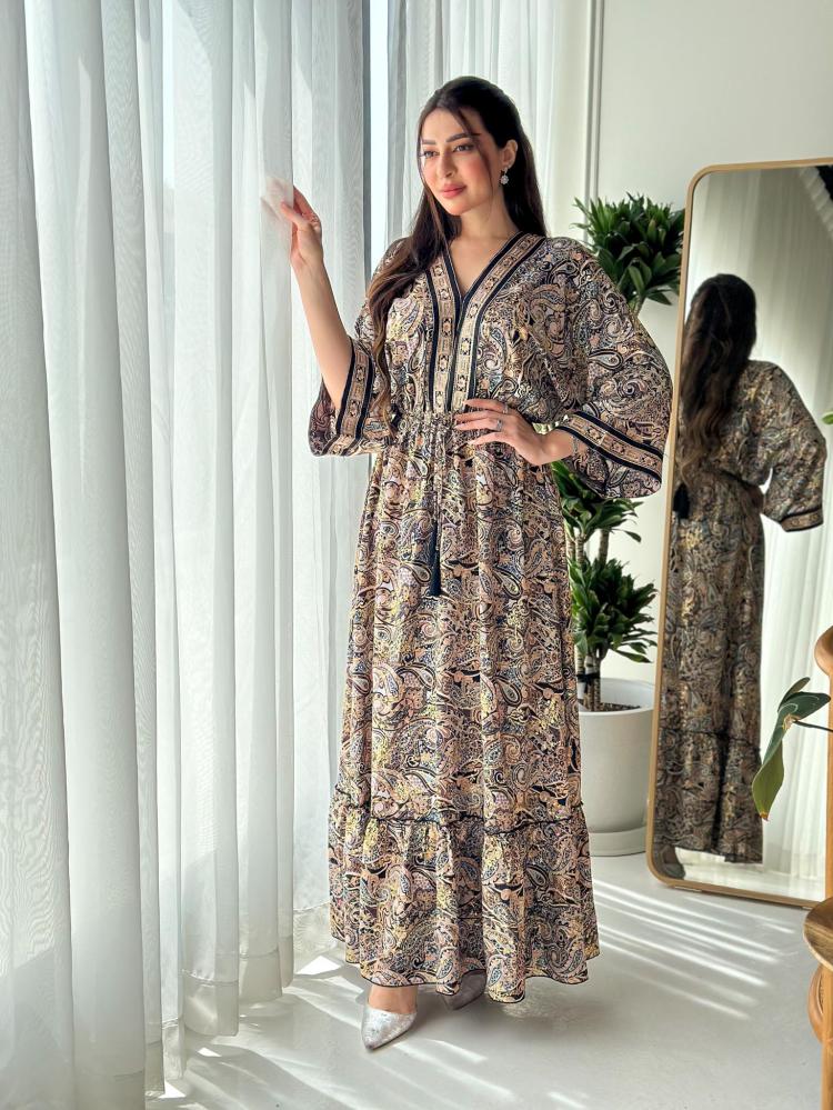 استمتعي بإطلالة شرقية ساحرة مع هذه الجلابية الرائعة التي تتميز بتصميم فريد يجمع بين الأناقة والراحة. مصنوعة من قماش فاخر عالي الجودة، مما يضمن لك الراحة التامة طوال اليوم.