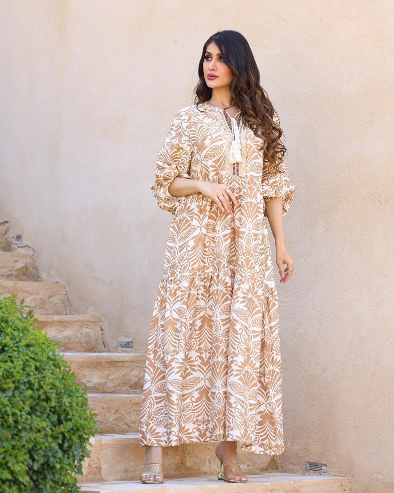 جلابية بنقوش فاخرة وتصميم واسع لإطلالة أنيقة ومريحة