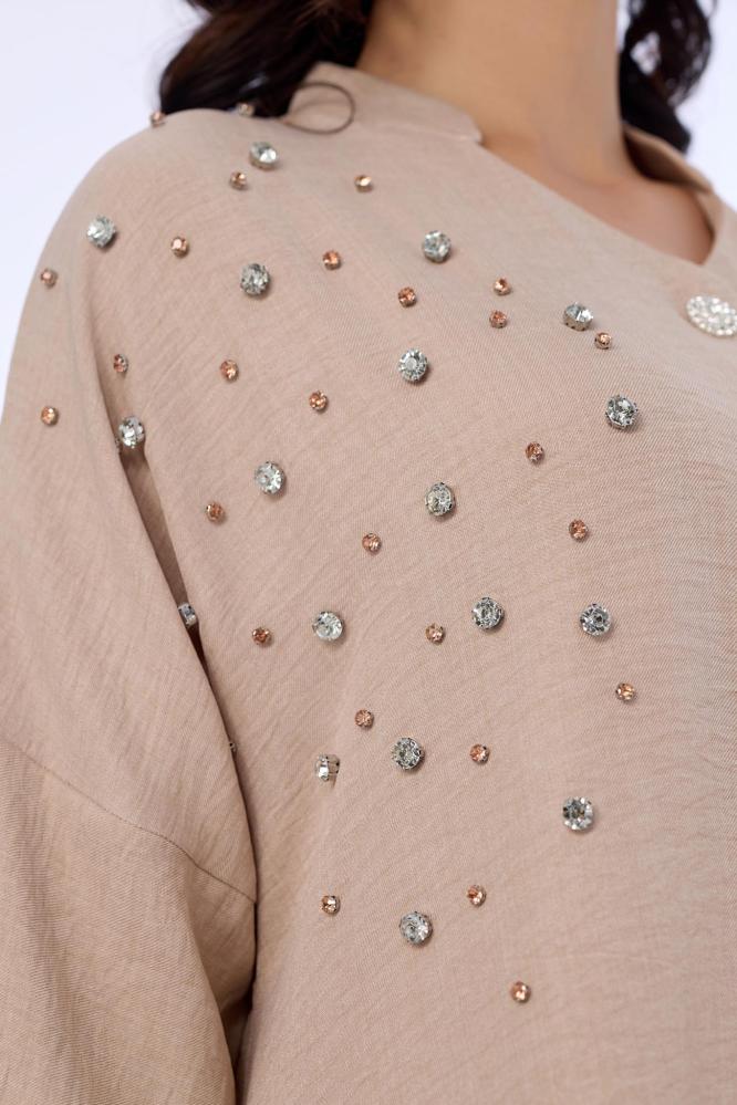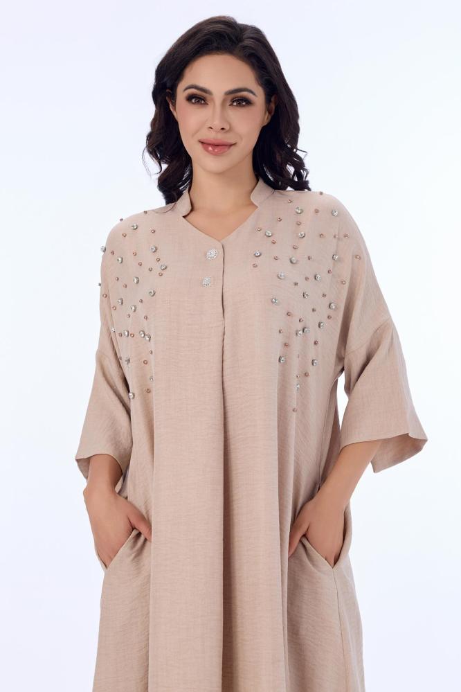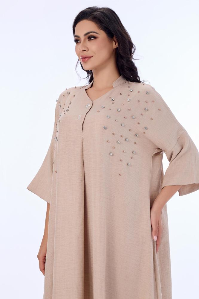 جلابية كريب بلون لحمي مزينة بكريستالات أنيقة