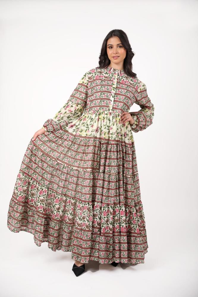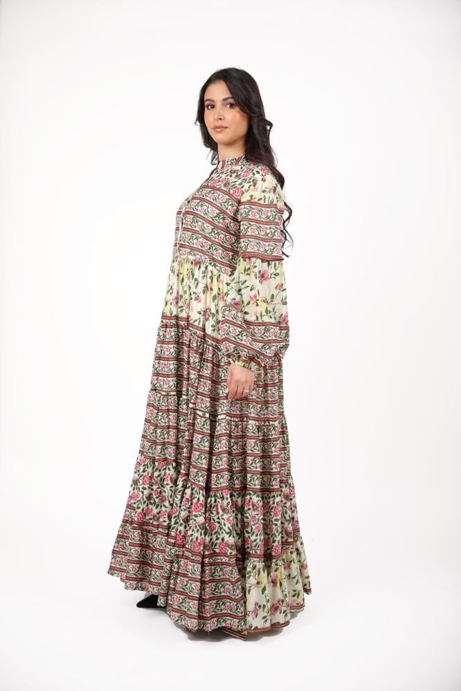 جلابية رمضانية كويتية مشجرة بلون أخضر مع سكارف