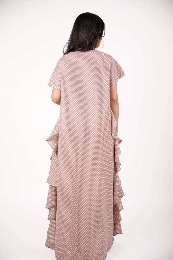 جلابية كويتية لون لحمي منقطة على درابية بالجوانب