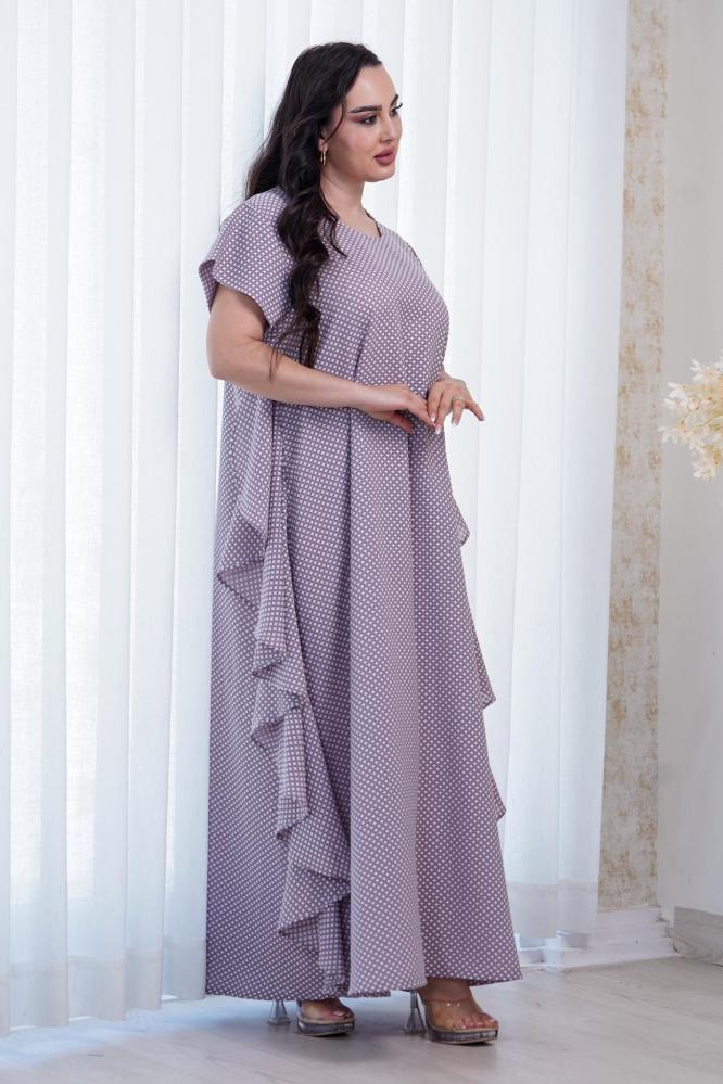 جلابية كويتي بلون موف منقطة مع درابية جانبية