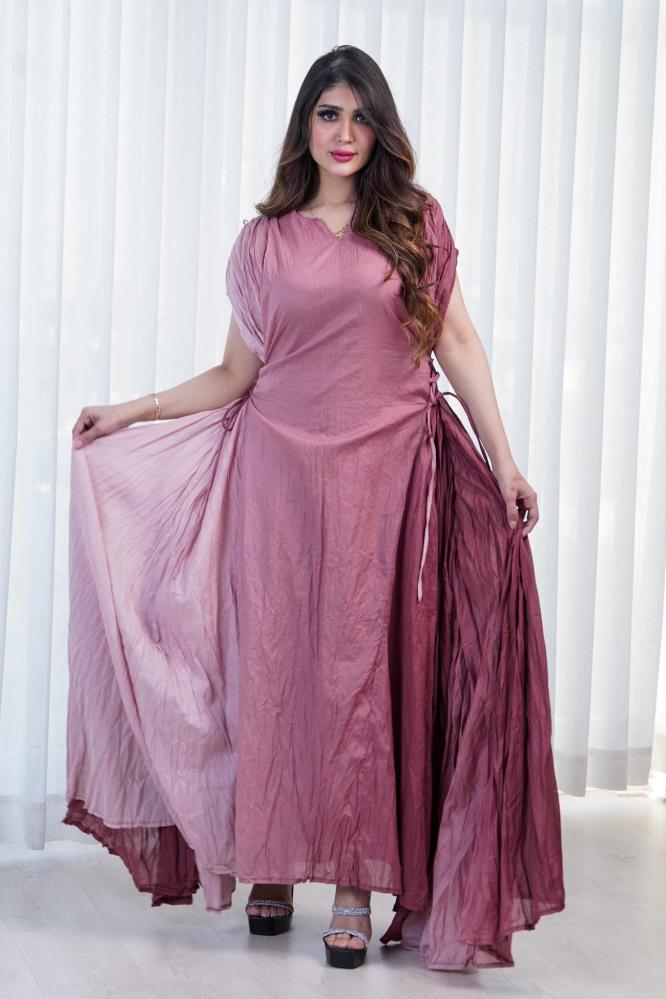 تألقي بإطلالة ناعمة ومريحة مع هذه الجلابية الكويتية الواسعة التي تتميز بقماش مكسر خفيف يمنحك إحساساً بالراحة والنعومة. اللون اللحمي المموج يضفي لمسة أنثوية جذابة، بينما تمنحك الربطة على الخصر إمكانية التحكم في التصميم لإبراز القوام بأسلوب أنيق. قصة الفستان الواسعة والانسيابية تجعله خيارًا مثالياً للإطلالات اليومية والمناسبات غير الرسمية.