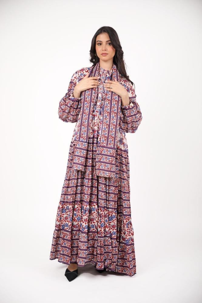 جلابية كويتية لون عنابي مشجرة مع سكارف