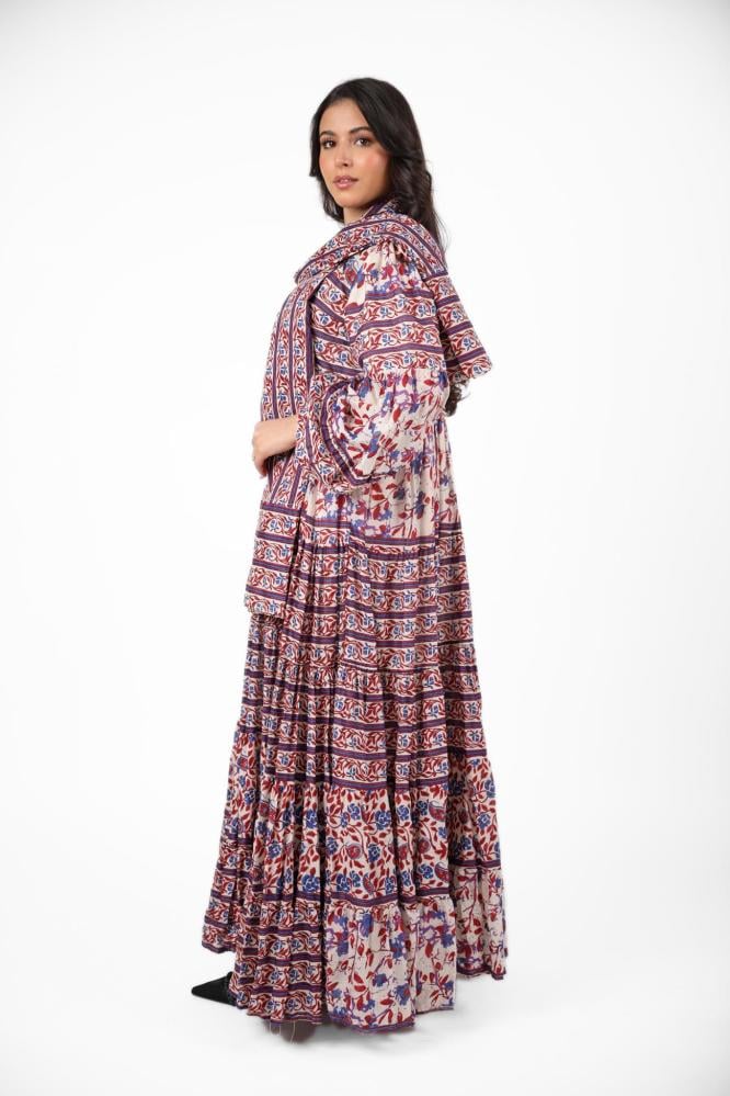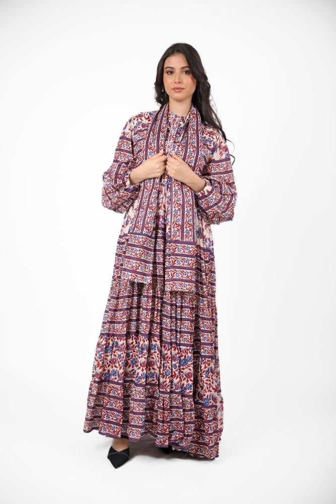 جلابية رمضانية كويتية مشجرة بلون عنابي مع سكارف