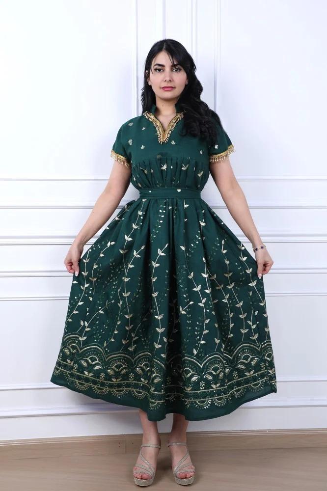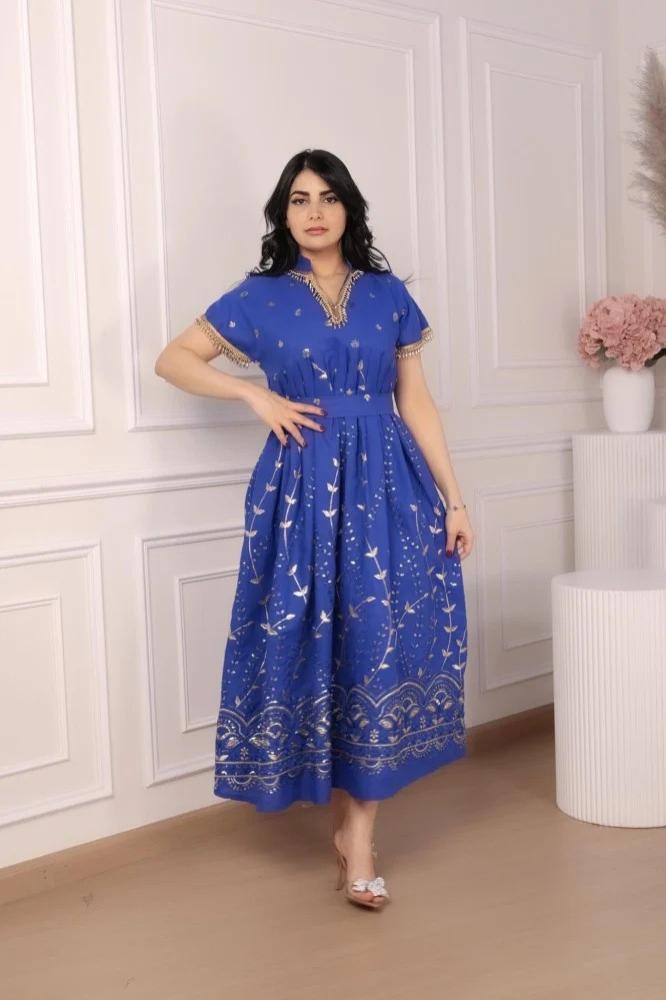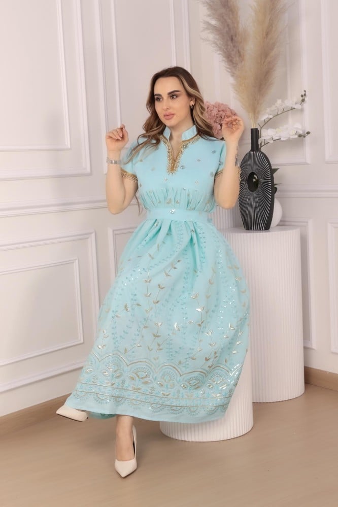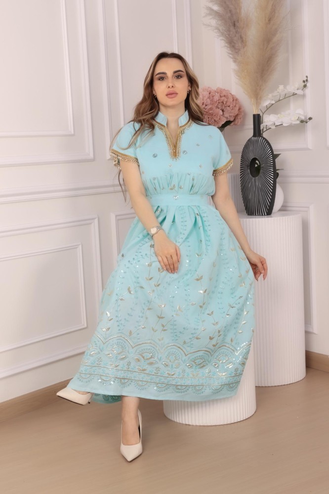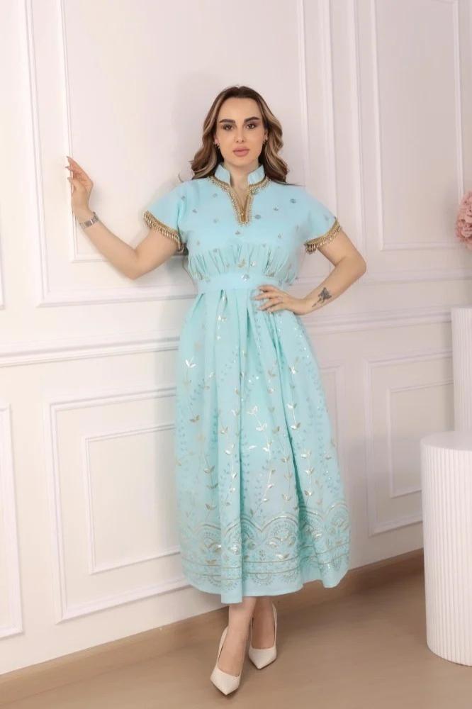 جلابية ميدي سهرة بتطريز مائي ورسومات أنيقة
