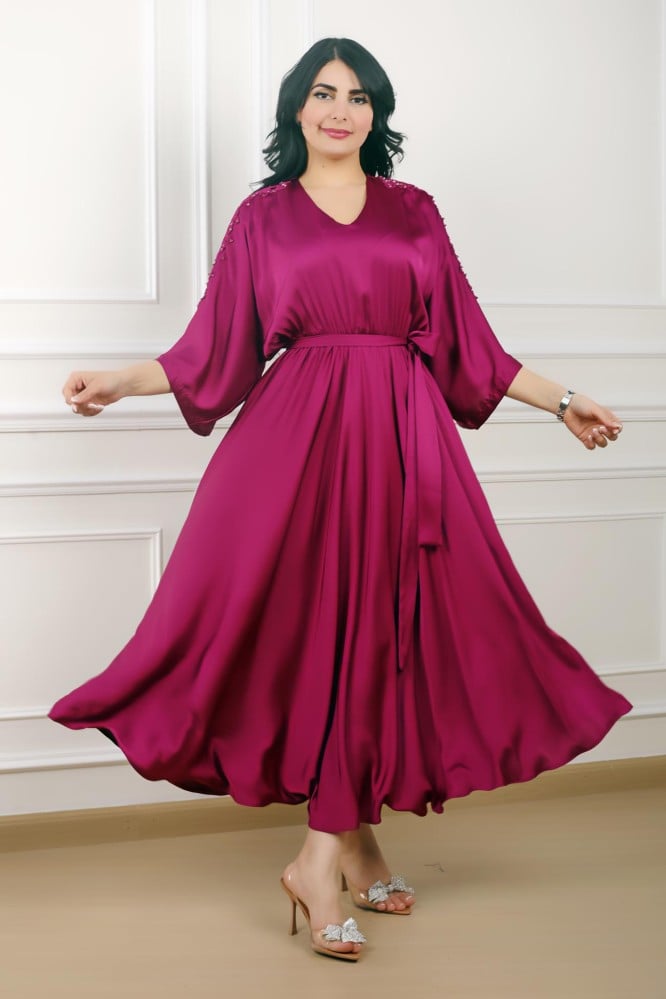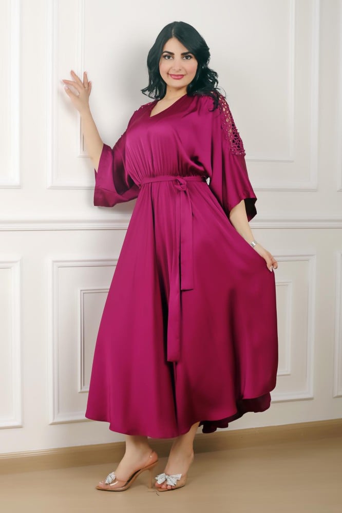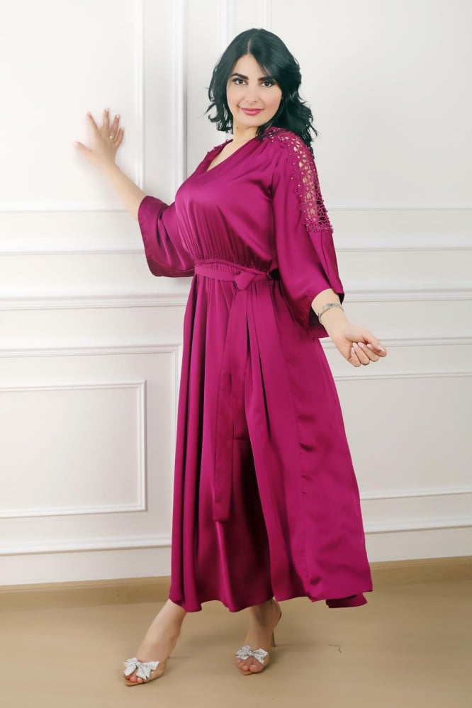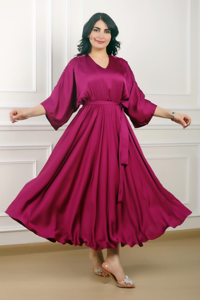 جلابية ميدي لون موف حرير اكمام طويله جوبير بفصوص نفس درجه اللون