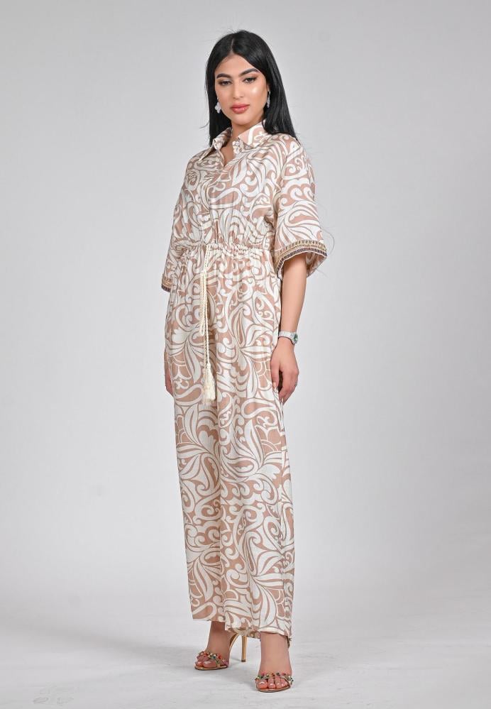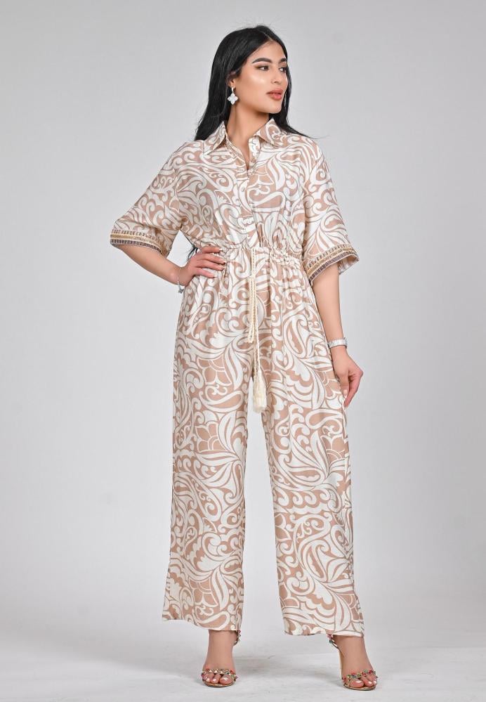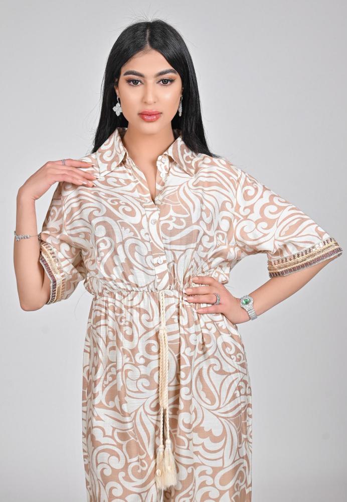 جمبسوت لنن بنقوش فاخرة وتصميم مريح لإطلالة أنيقة وعصرية