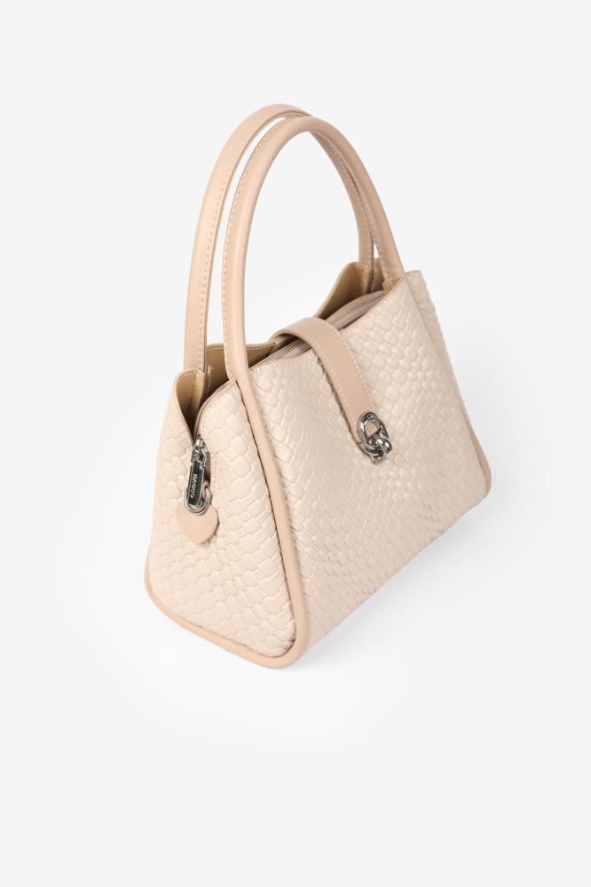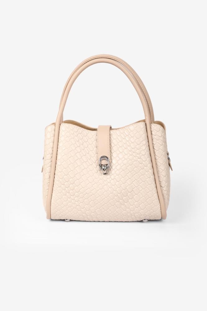استمتعي بالمزيج الفريد من الأناقة والعملية مع هذه الحقيبة اليدوية المنسوجة. تأتي بلون ابيض ، مما يجعلها مثالية لتكمل أي إطلالة سواء كانت كاجوال أو رسمية. تصميمها المنسوج يضيف بُعداً من التفرد والجاذبية، وهو ما يميزها عن الحقائب التقليدية. مع مساحة داخلية واسعة وجيوب متعددة، تسمح لك هذه الحقيبة بتنظيم مقتنياتك بسهولة، مع الحفاظ على سهولة الوصول إليها.