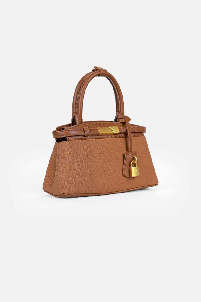 شنطة يد أنيقة بلون جملي فاخر، بتصميم عصري يجمع بين البساطة والفخامة. مصنوعة من قماش فاخر مع تفاصيل جلدية ولمسات معدنية ذهبية أنيقة تضيف طابعاً راقياً، مما يجعلها الخيار المثالي للإطلالات اليومية والمناسبات الخاصة.