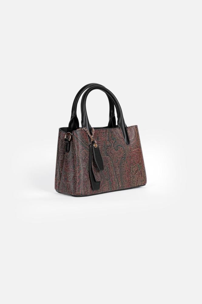 شنطة أنيقة من ماركة باجكو (Bagco)، بتصميم عملي وفني يجمع بين الفخامة الشرقية والتنسيق العصري.