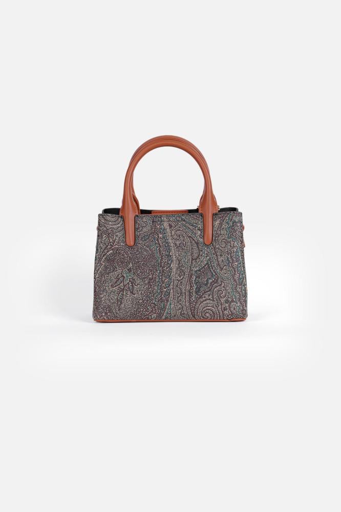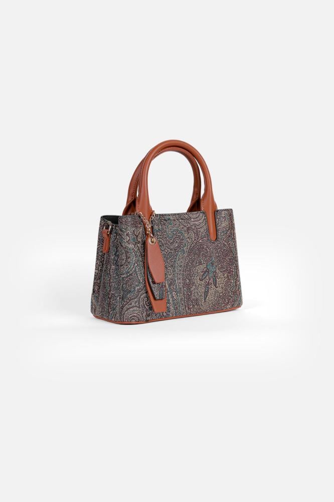 شنطة أنيقة من ماركة باجكو (Bagco) بلمسات مستوحاة من النقوش الشرقية العريقة.