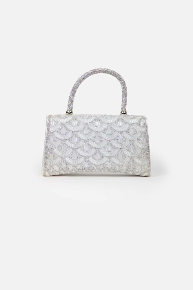 شنطة يد سهرة مرصعة بكريستالات فاخرة لون فضي