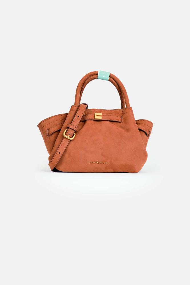 شنطة يد كريسبلا قماش شمواه مخملية بلون بني فاخر