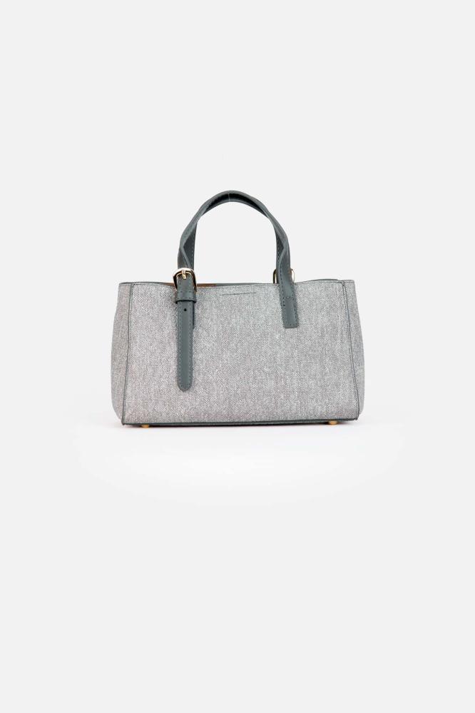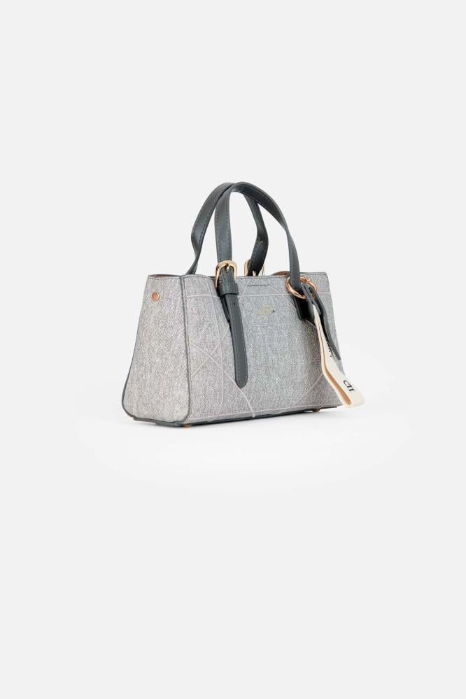 شنطة يد لوسيندا بتفاصيل هندسية أنيقة بلون رمادي