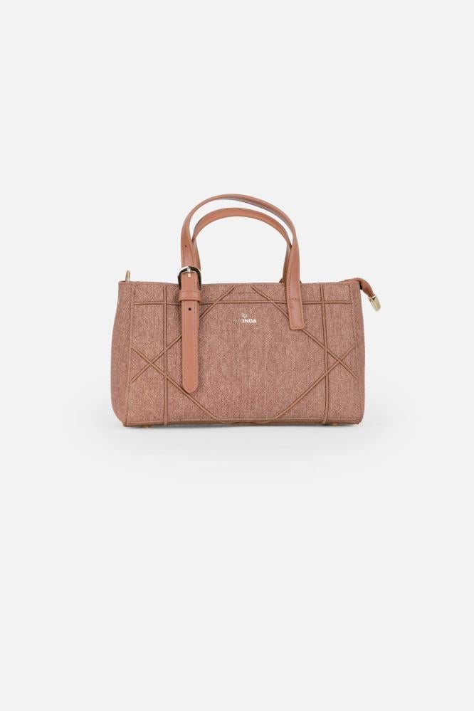 شنطة أنيقة تنطق بالفخامة والذوق الرفيع من ماركة لوسيندا، صُممت لترافقك في جميع مناسباتك بإطلالة لا تُنسى. مصنوعة من خامة قماشية متينة بلون وردي دافئ، وتزينها خطوط هندسية من الجلد الناعم تضيف لمسة عصرية فريدة. تصميمها العملي والمميز يجعلها الخيار الأمثل لمن تبحث عن الأناقة دون التنازل عن الراحة.