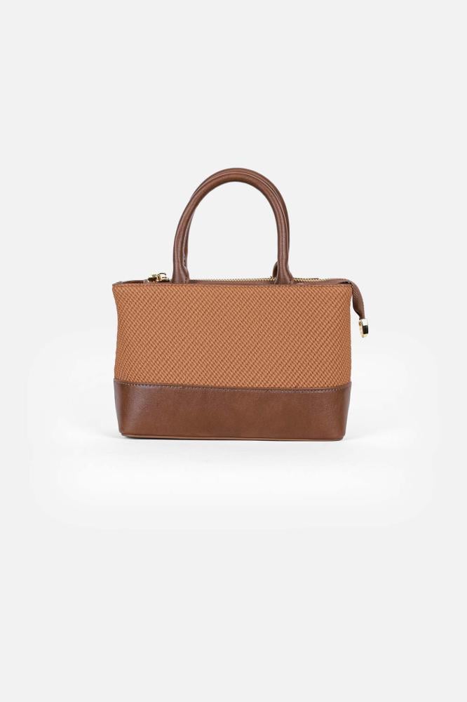 شنطة يد لوسيندا قماش وجلد بلون بني فاتح أنيق