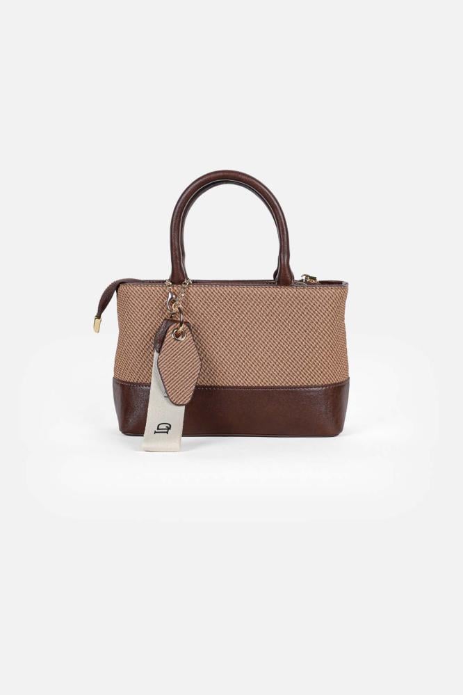 شنطة يد لوسيندا قماش وجلد بني أنيق