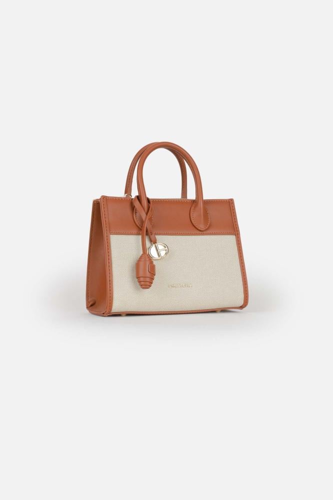 تتميز الشنطة بمقابض مزدوجة أنيقة، وسلسلة مفاتيح معدنية مستوحاة من الهوية الراقية للعلامة. مزودة بسحاب داخلي آمن، ومساحة مناسبة لحفظ مقتنياتك اليومية أو مستلزمات المناسبات الخاصة.