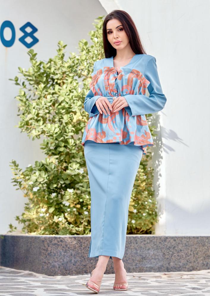 القصّة المستقيمة مع الخصر المحدد تضفي مظهرًا أنيقًا يبرز القوام بأسلوب راقٍ، بينما تضيف التفاصيل العلوية لمسة فنية مميزة دون مبالغة.