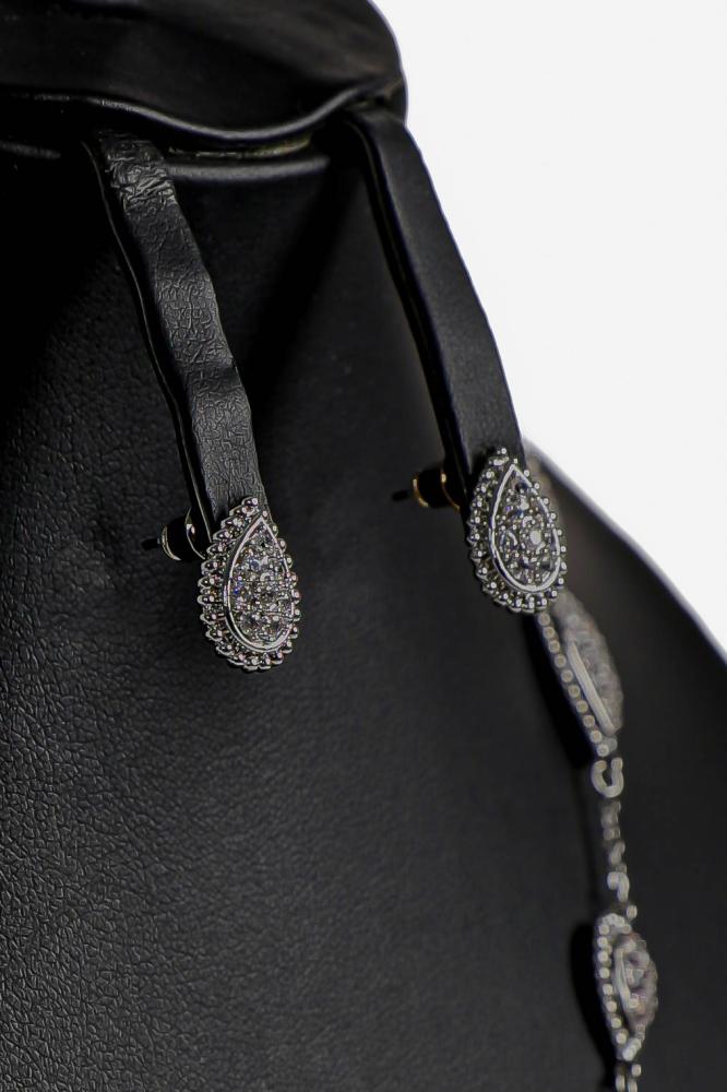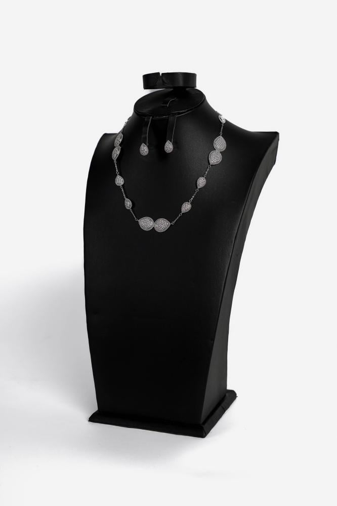 طقم اكسسوار زركون انيق عقد وحلق لون فضي