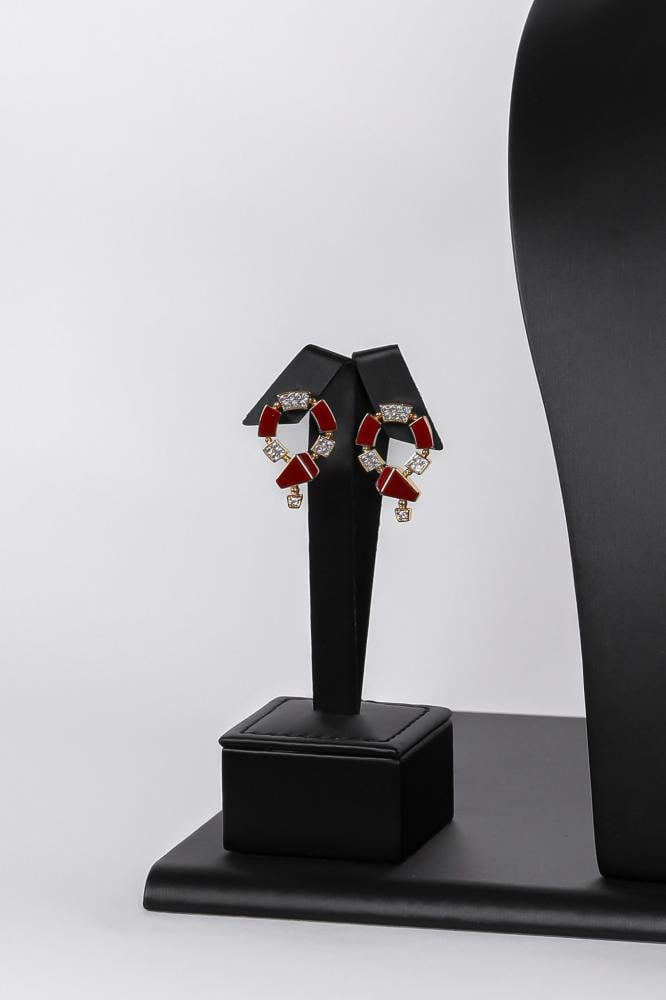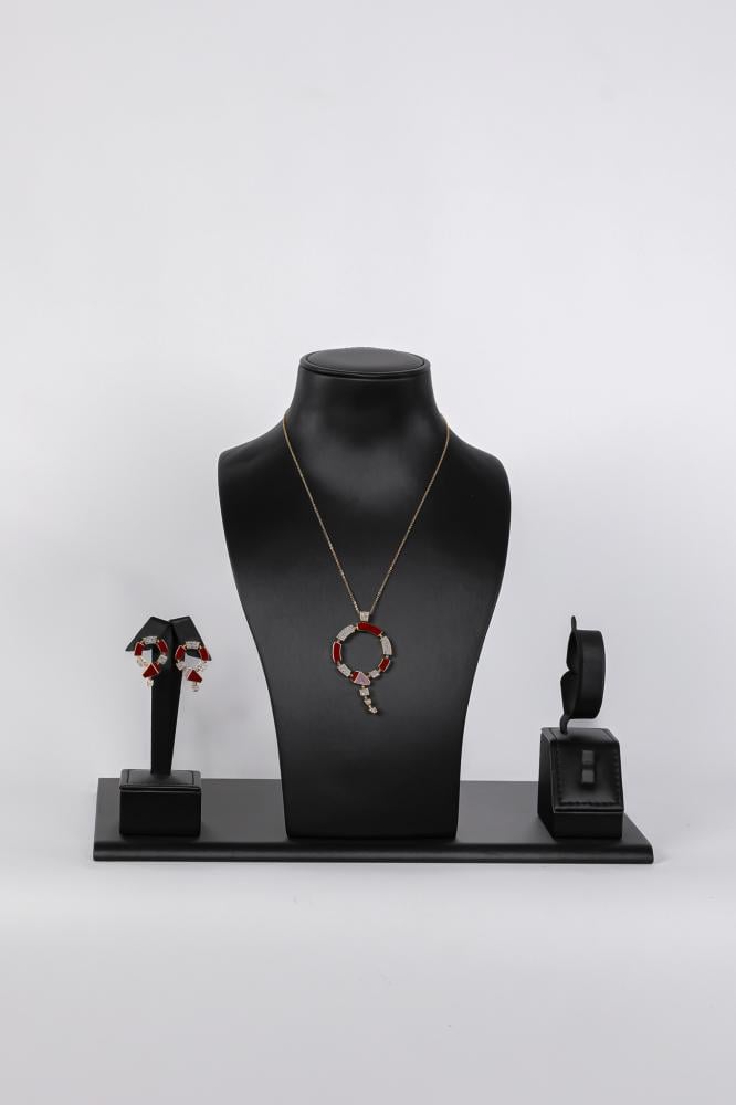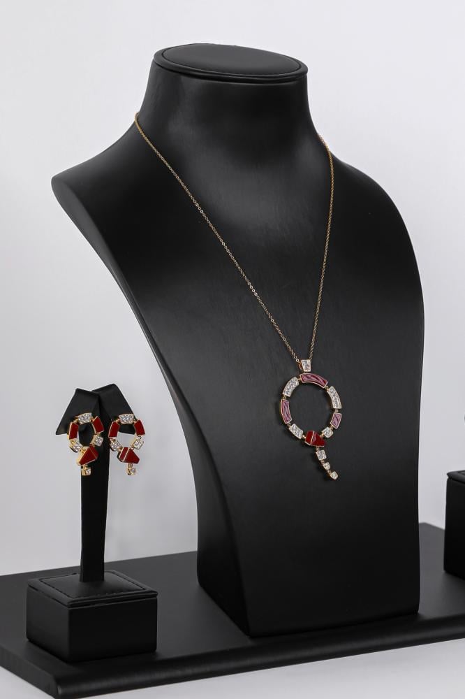 طقم اكسسوار زركون على احجار كريمة لون عنابي