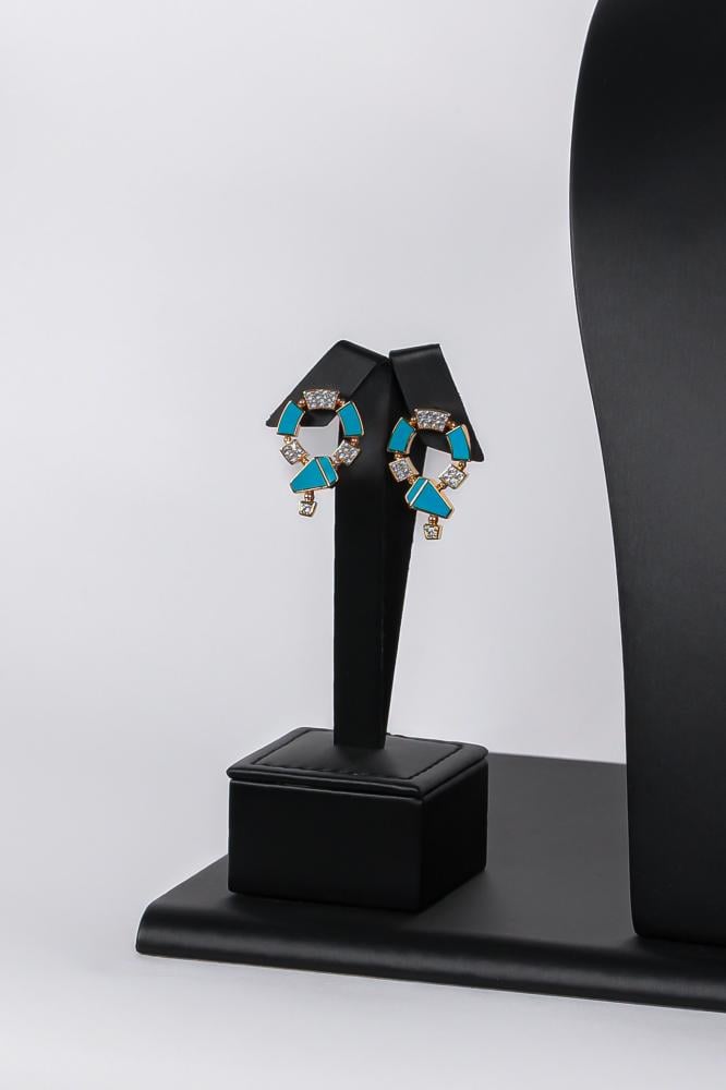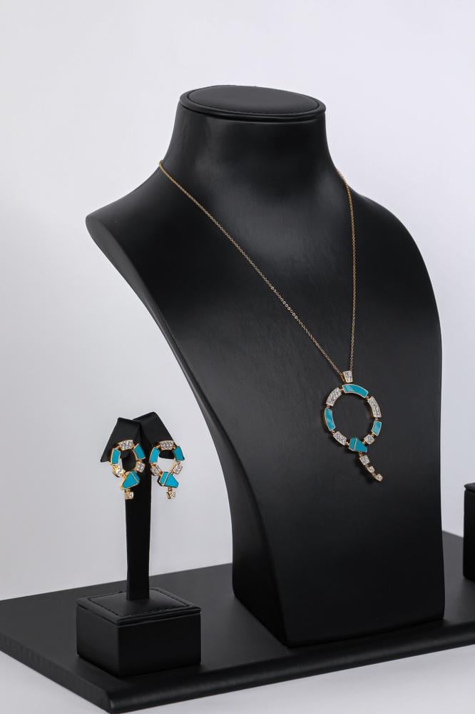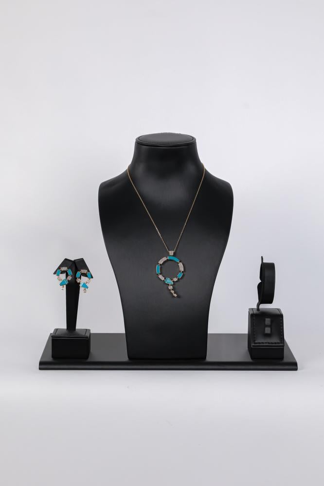 طقم اكسسوار زركون على احجار كريمة لون فيروزي