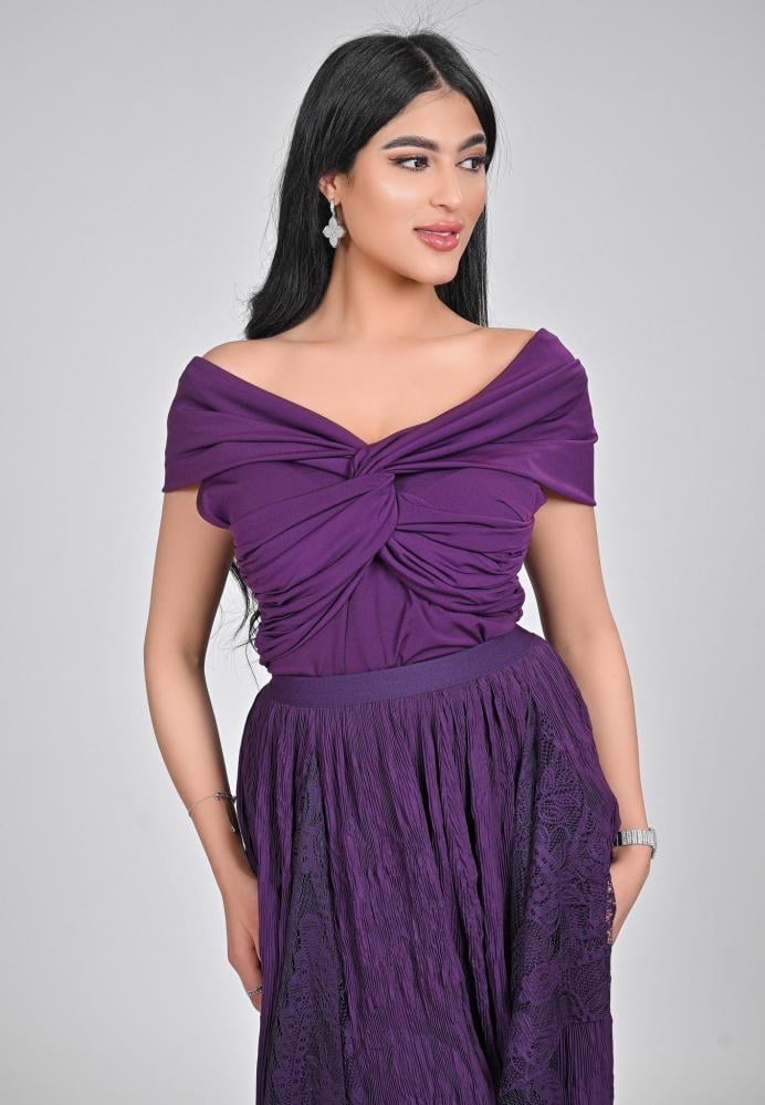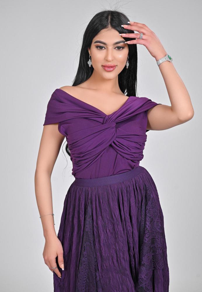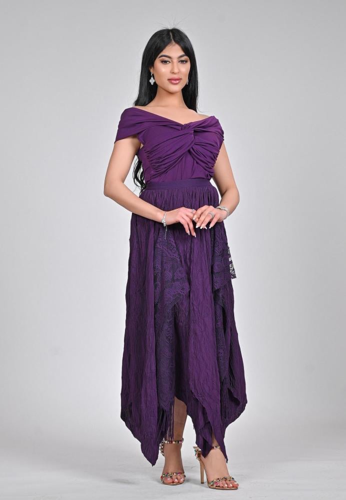 ارتقي بإطلالتك مع هذا الطقم الأنيق المصمم بأسلوب يجمع بين العصرية والفخامة. البلوزة مصنوعة من قماش الاسترتش الذي يمنحك راحة مثالية مع تصميم أنثوي جذاب يعزز جمال القوام. أما التنورة فهي مصنوعة من قماش مكسر انسيابي يضيف لمسة من الرقي، ومزينة بتفاصيل دانتيل فاخرة لمظهر جذاب ومميز. تصميم التنورة غير المتساوي عند الأطراف يضفي لمسة عصرية رائعة، مما يجعل هذا الطقم الخيار الأمثل للسهرات والمناسبات الفاخرة.