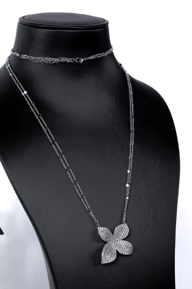 طقم زركون فضي سلس مع حلق بتصميم زهرة لإطلالة راقية
