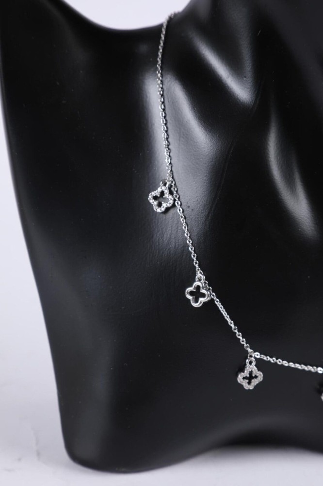 طقم زركون ناعم لون فضي سلسال مع حلق