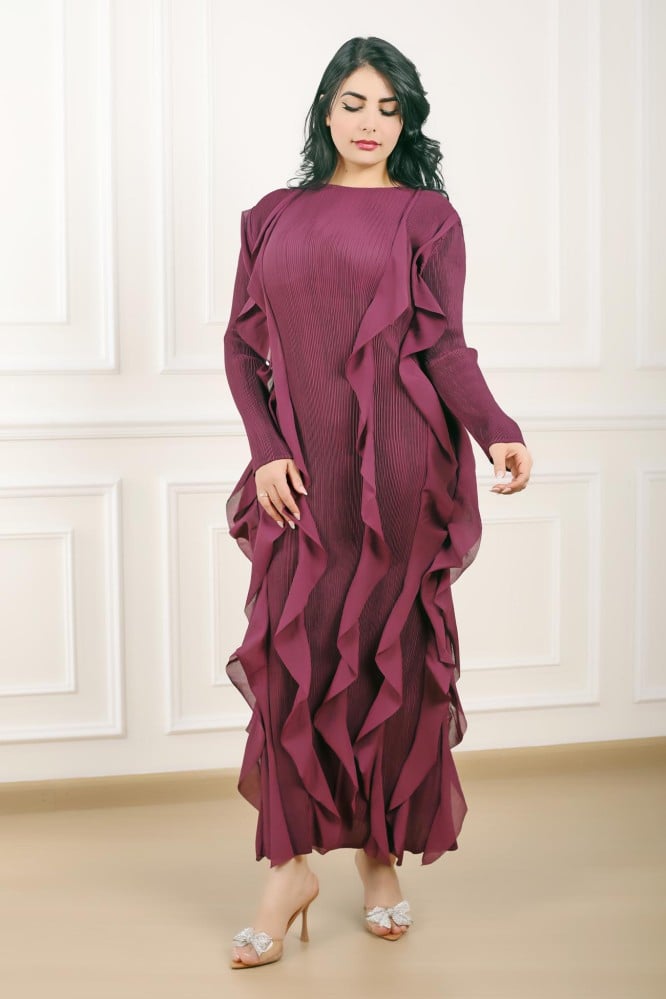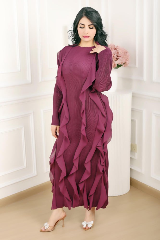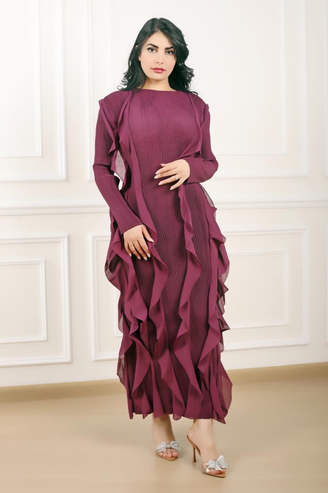 فستان بلاسية طويل على طبعات ثلاثية الابعاد على الفستان مزموم اكمام طويلة