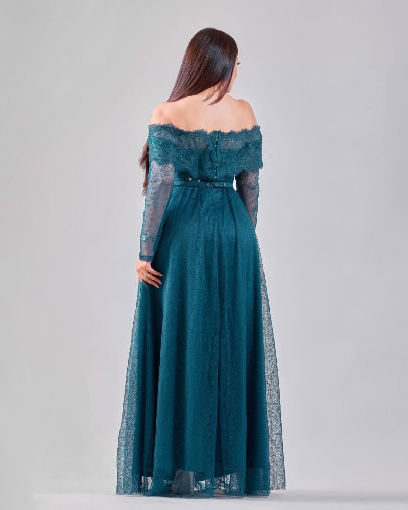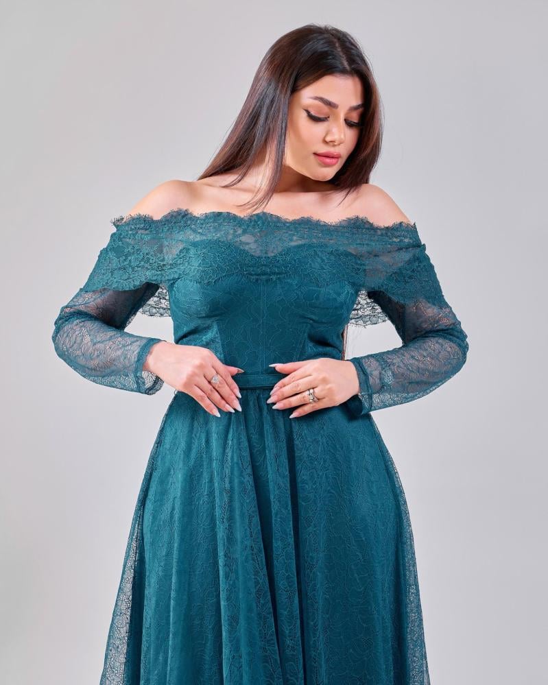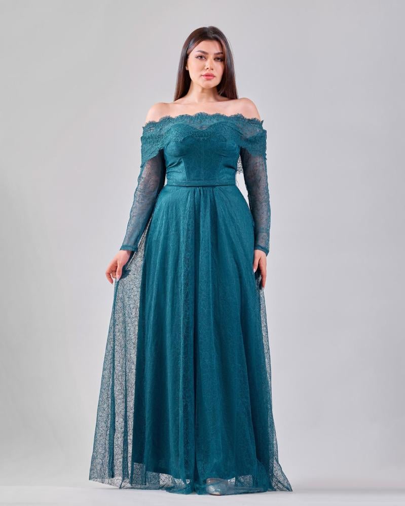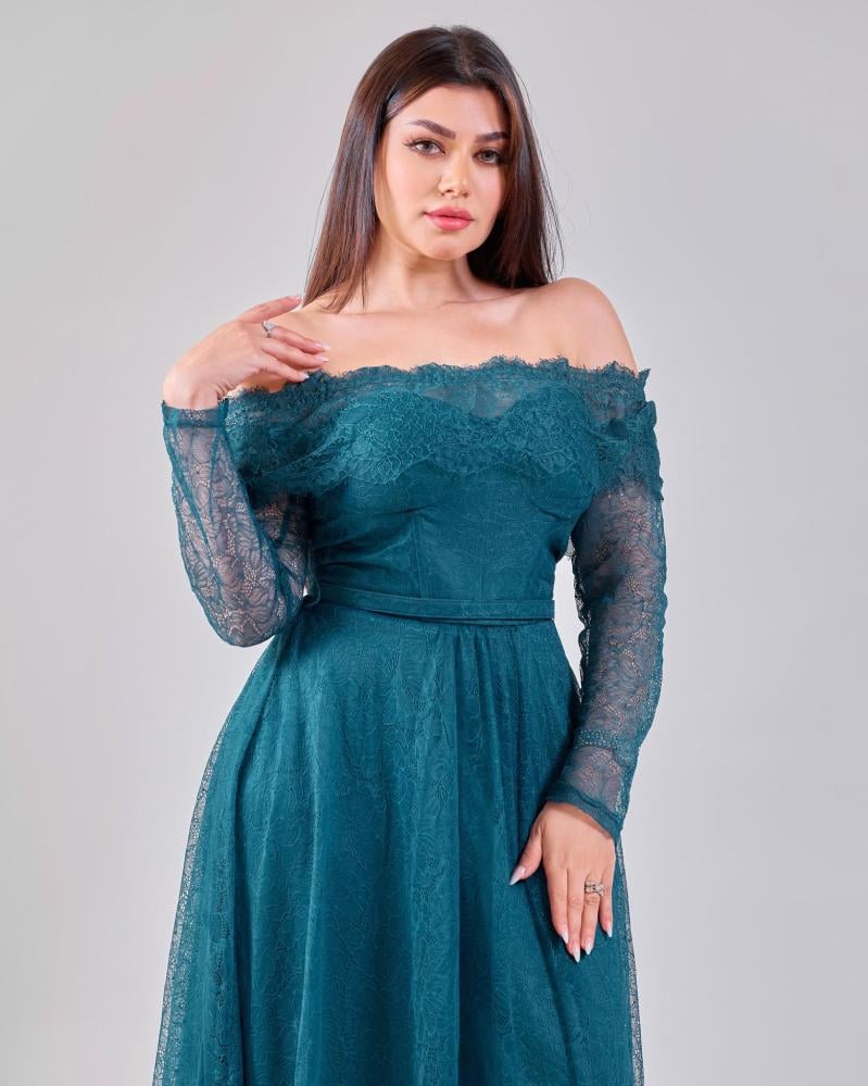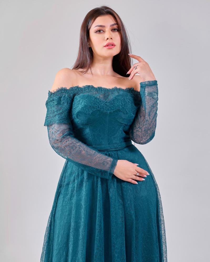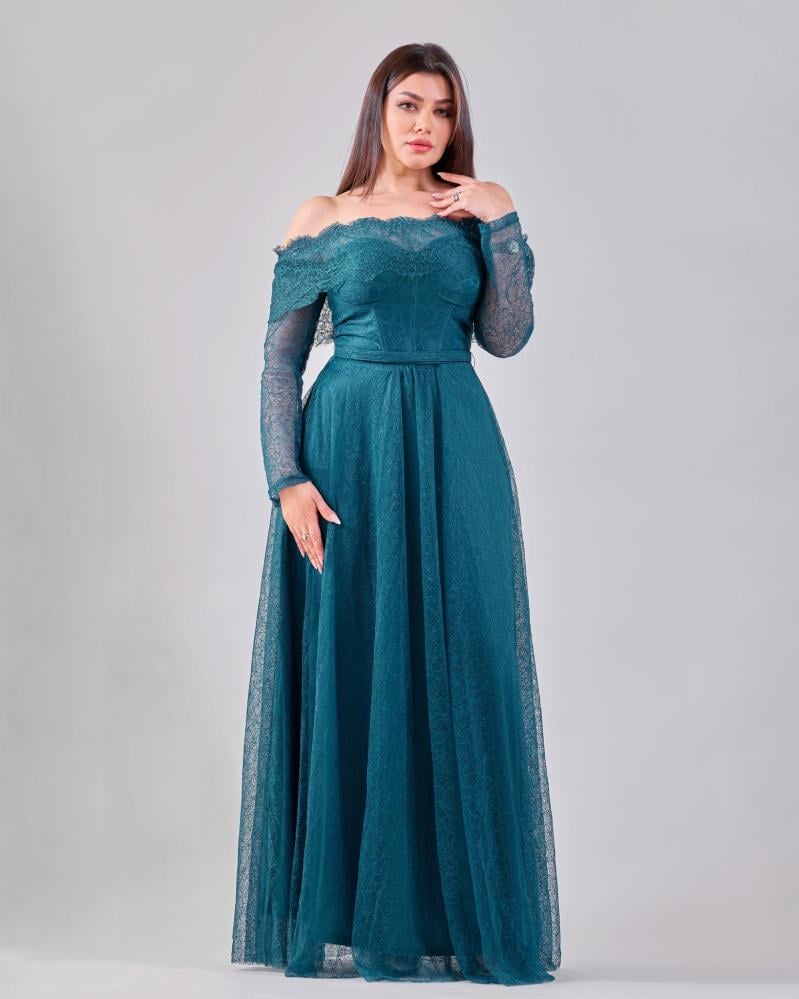 يأتي هذا الفستان بتصميم أنيق يجمع بين الرقي والأنوثة، حيث يبرز تصميم الأوف شولدر جمال الأكتاف بأسلوب ناعم، بينما تضيف الأكمام الشفافة لمسة فاخرة تزيد من جاذبية الإطلالة. القَصّة الطويلة تنسدل بانسيابية أنيقة وتمنح حضوراً راقياً، مع تصميم متوازن يبرز القوام برقي دون مبالغة. خيار مثالي للسهرات، الحفلات، والمناسبات الرسمية.