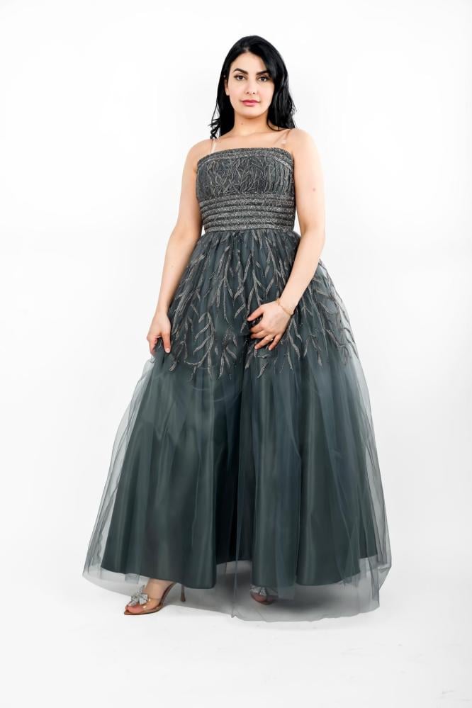 التطريز الدقيق الذي يزين الجزء العلوي من الفستان يمنحه لمسة من الفخامة والتألق، مما يجعله الخيار المثالي للمناسبات الخاصة والسهرات. هذا الفستان ليس مجرد قطعة ملابس، بل هو قطعة فنية تجعلك تتألقين كنجمة في كل مناسبة. ارتديه مع إكسسوارات بسيطة وحذاء أنيق لتحصلي على إطلالة لا تُنسى.