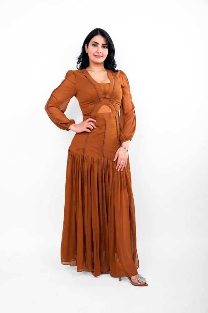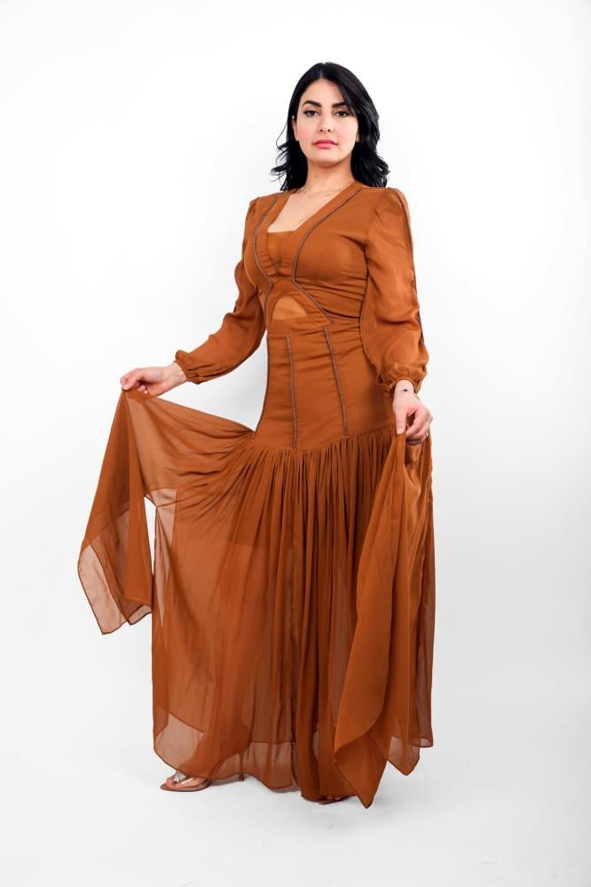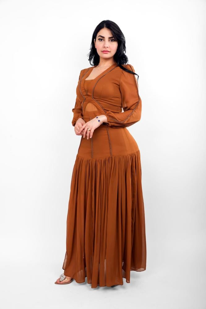 فستان شيفون مع تفاصيل كريستال، يجمع بين الفخامة والراحة لجميع مناسباتك الخاصة.