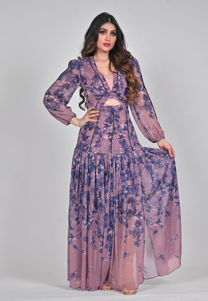 تألقي بإطلالة راقية مع هذا الفستان المذهل المصنوع من الشيفون المشجر الناعم، الذي يمنحك إطلالة انسيابية مميزة. يتميز بتصميم أنيق بأكمام طويلة تعزز الفخامة، بينما تضيف الفصوص المتلألئة لمسة ساحرة ولمعاناً جذاباً. القصة الأنثوية العصرية تجعله مثالياً للمناسبات الراقية، حيث يجمع بين الأنوثة والجاذبية بأسلوب عصري راقٍ.