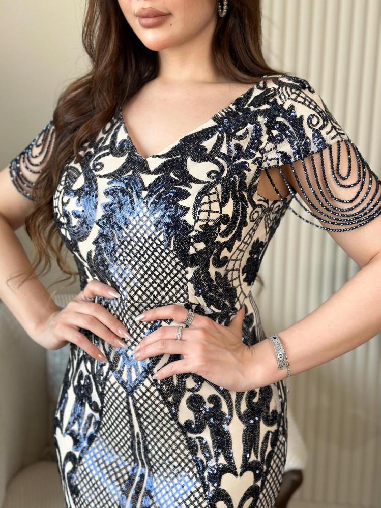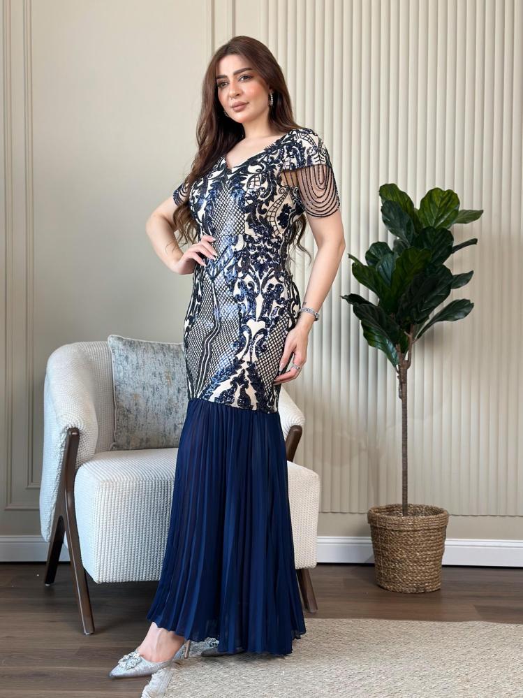 فستاننا المميز يوفر توليفة مثالية من الأناقة والراحة، مصمم من قماش الاسترتش الذي يضمن ملاءمة مثالية مع كل حركة. يتميز الجزء العلوي بزخرفة ترتر براقة تضفي لمسة من الفخامة والتألق، بينما يأتي الشيفون المكسر لتعزز من جمال الفستان بطياتها الناعمة التي تتحرك بسلاسة مع كل خطوة. مثالي للحفلات والمناسبات الخاصة، هذا الفستان هو الاختيار الأمثل لمن تبحث عن إطلالة متكاملة تجمع بين الجمال والراحة.