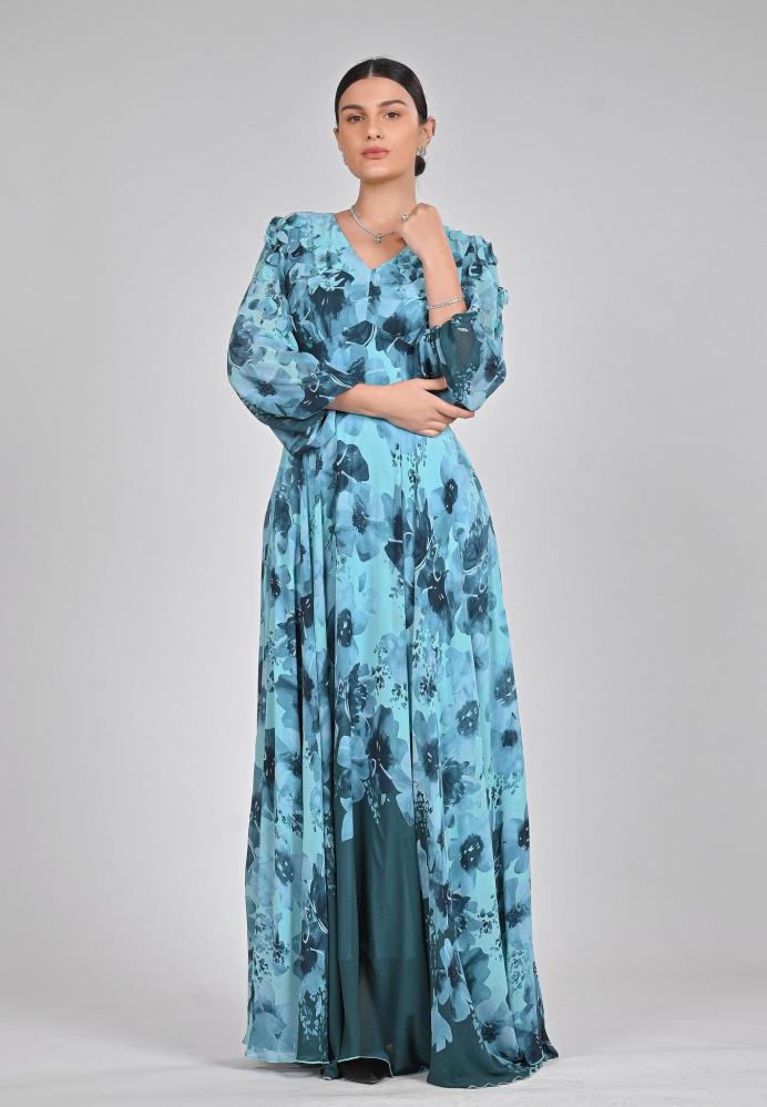 فستان شيفون مشجر طويل بورود ثلاثية الأبعاد