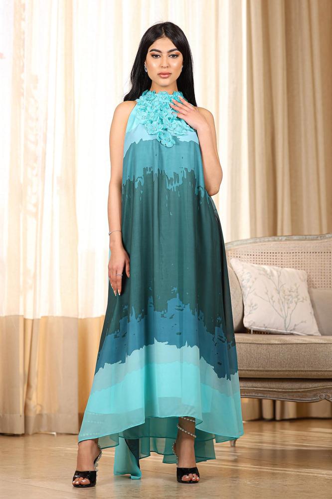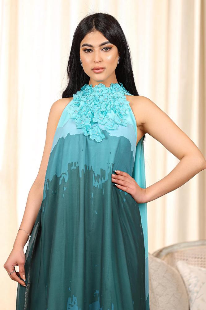 تألقي بجاذبية ساحرة مع هذا الفستان الميدي المصنوع من الشيفون المشجر، الذي يجمع بين الأناقة والراحة. يتميز بقصة مريحة وانسيابية تمنحك حرية الحركة، مع تفاصيل أنثوية ناعمة مثل الورود ثلاثية الأبعاد عند الرقبة التي تضفي لمسة فاخرة. يكتمل التصميم بوشاح خفيف ينساب بأناقة ليمنحك طابعاً راقياً ومميزاً. الألوان المتدرجة والمشرقة تجعله خياراً مثالياً للسهرات والإطلالات العصرية الأنيقة.