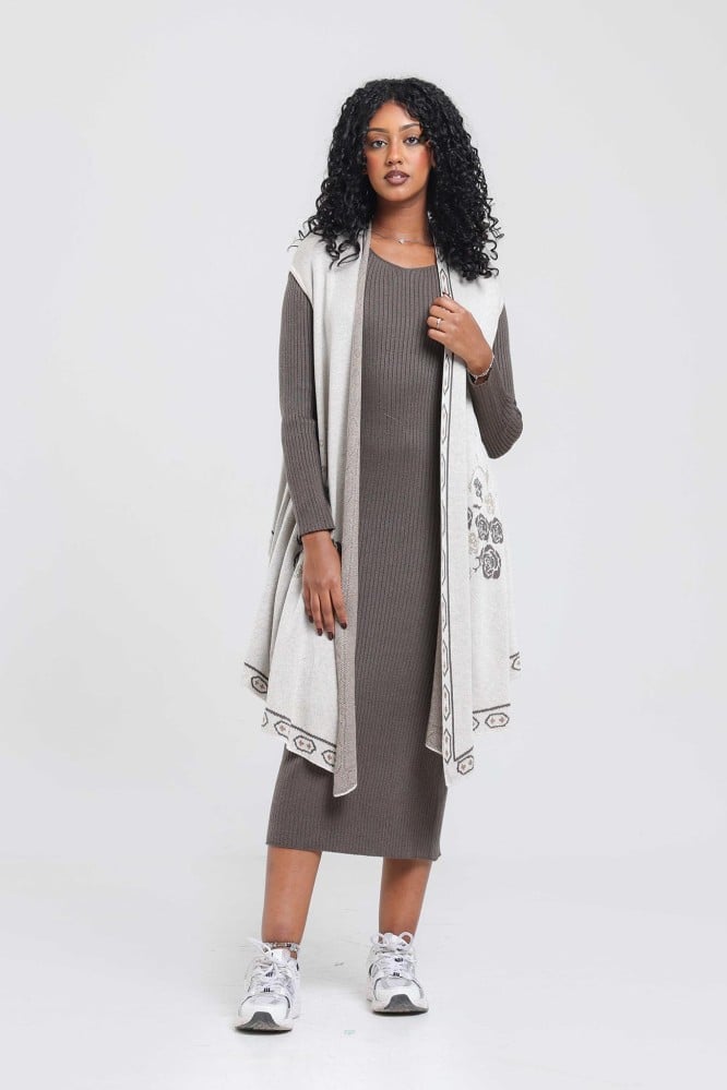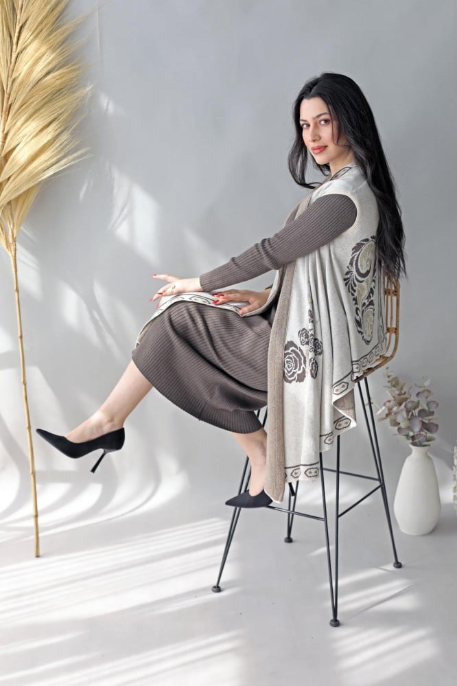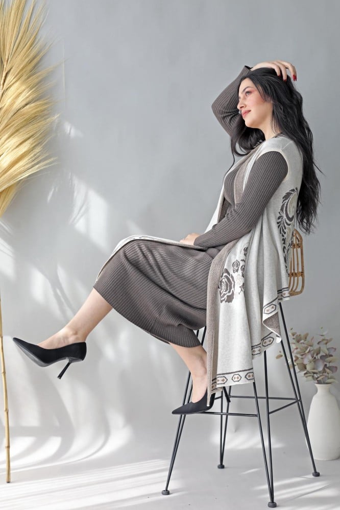 تألقي بإطلالة عصرية وأنيقة مع هذا الفستان المكون من قطعتين. القطعة الداخلية مصممة بقصة سكيني ماسك مريحة بأكمام طويلة تناسب الأجواء الباردة، بينما الجاكيت الخارجي المنسدل يضفي لمسة من الانسيابية والجاذبية على الإطلالة. تصميم يجمع بين الراحة والأناقة، مما يجعله خيارًا مثاليًا للإطلالات اليومية والمناسبات الكاجوال.