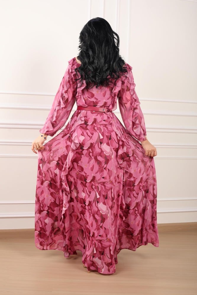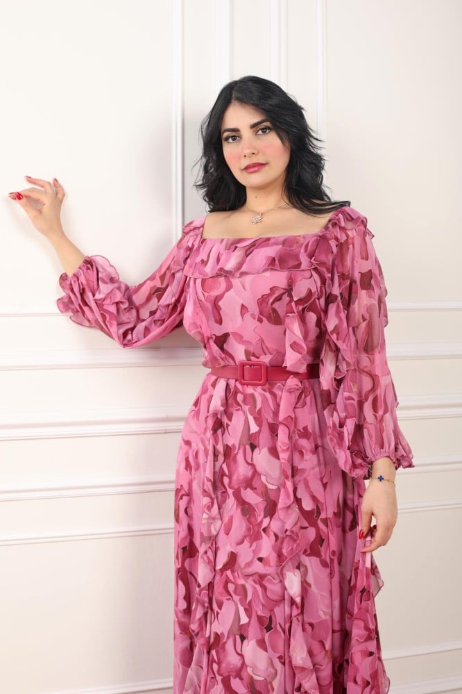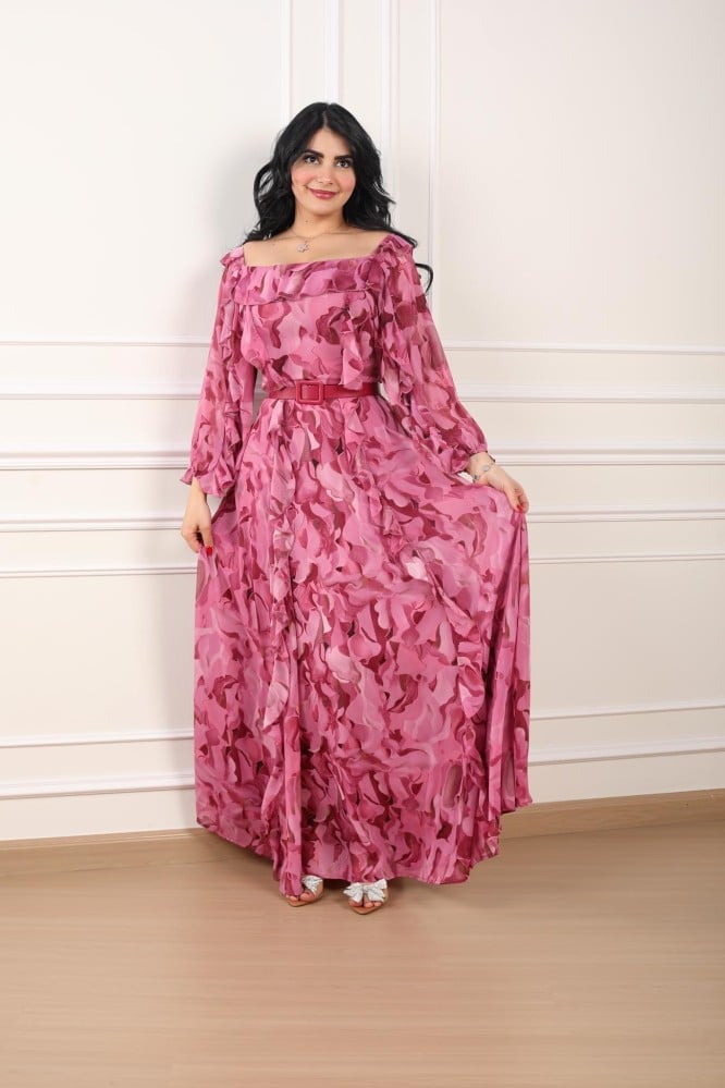 فستان مشجر لون زهري