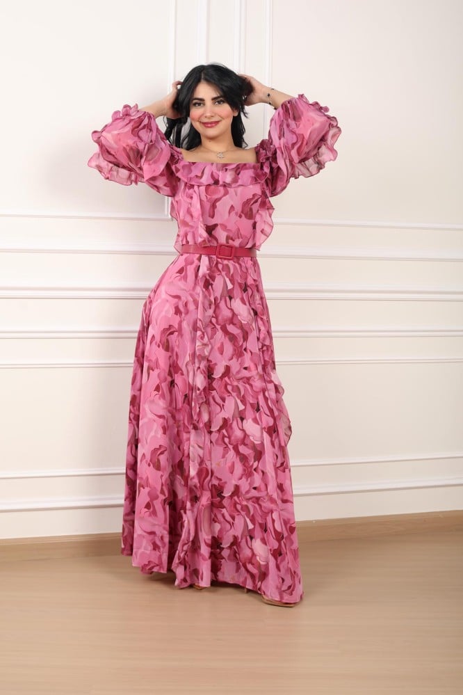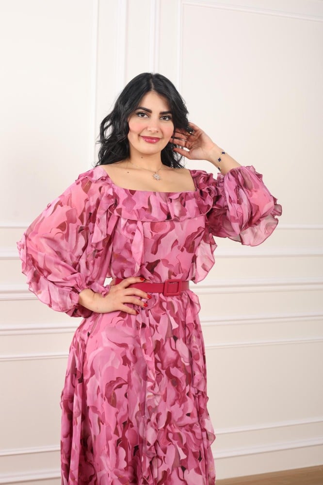 فستان مشجر لون زهري للعيد