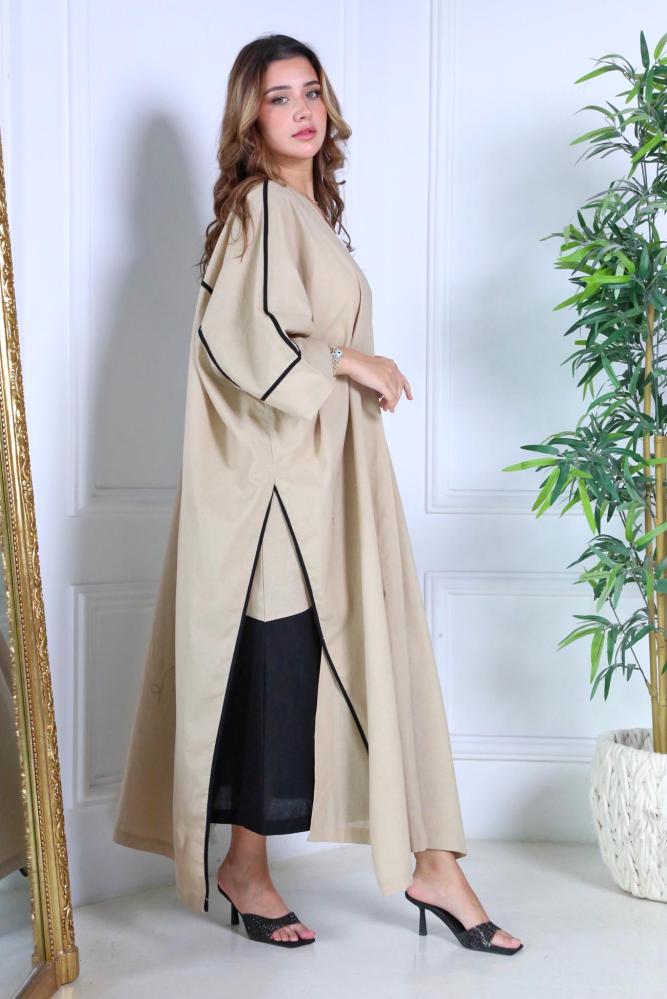 هذا الطقم المثالي للسفر يتكون من قطعتين مصنوعتين من قماش ناعم ومريح. القطعة الأولى بلونين بيج واسود ، والقطعة الثانية عبارة عن بشت لون بيج طويل يضفي لمسة من الأناقة والتميز. هذا الطقم مناسب للرحلات والسفر، حيث يجمع بين الراحة والأناقة.
