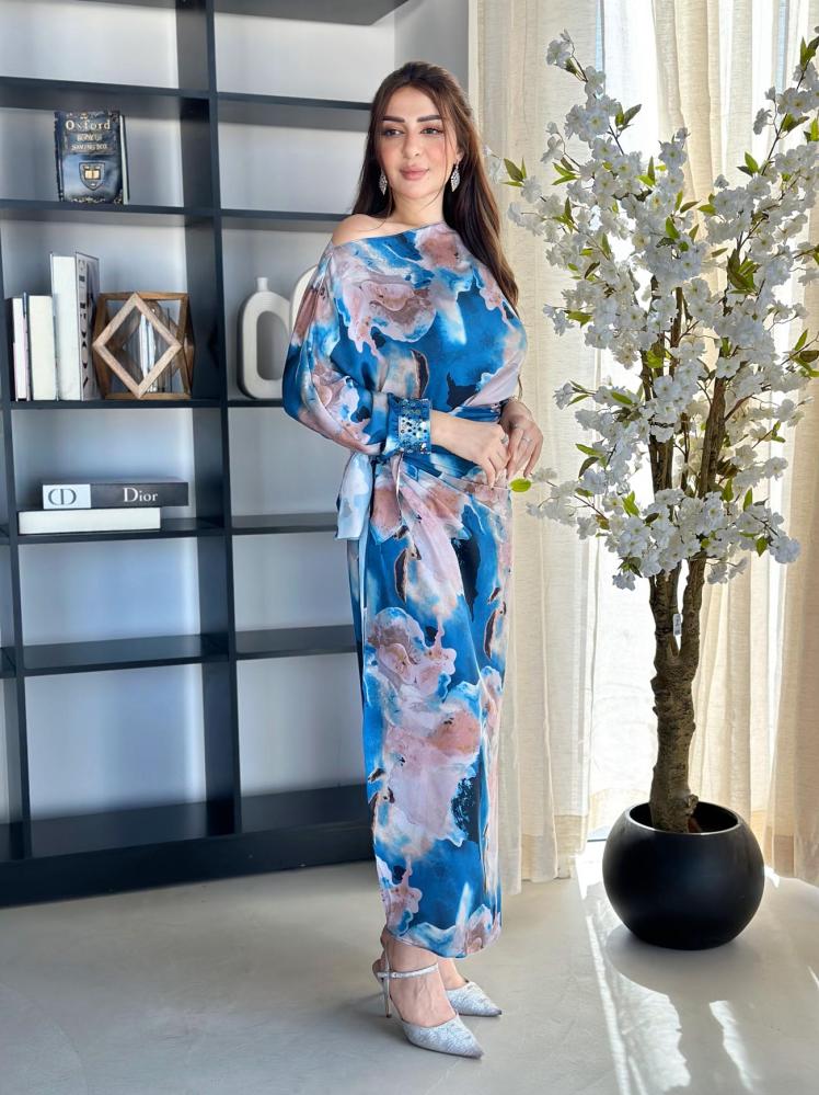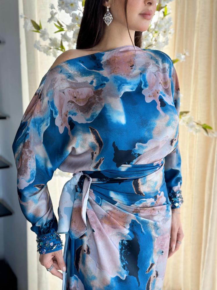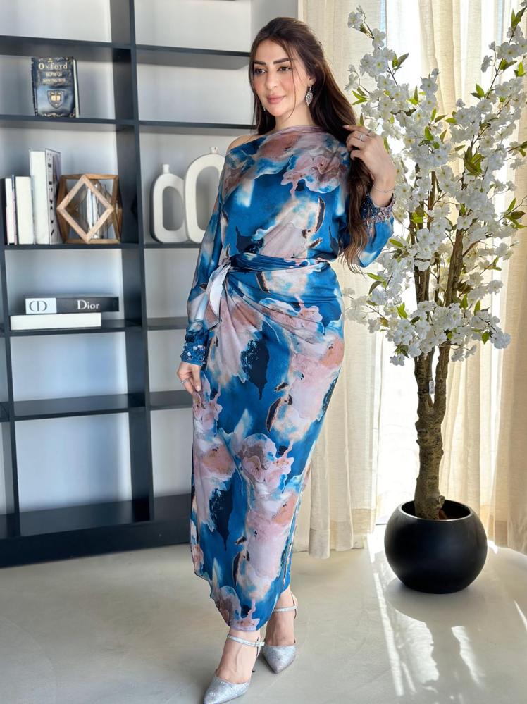انغمسي في تفاصيل الأنوثة مع هذا الفستان الفخم المصمم بنقشة مشجرة ناعمة تنبض بألوان الربيع. يتميز الفستان بقصة ملفتة حول الخصر مع توريدة لامعة تعزز من جمال القوام. الأكمام الطويلة مزينة بفصوص اكسسوار تضيف لمسة من الرقة والجاذبية، مما يجعله الخيار المثالي للتألق في المناسبات المسائية والاحتفالات. تصميم الفستان المتقن يضمن لك إطلالة غنية بالتفاصيل الدقيقة والجودة العالية، لتكوني محط الأنظار في كل خطوة