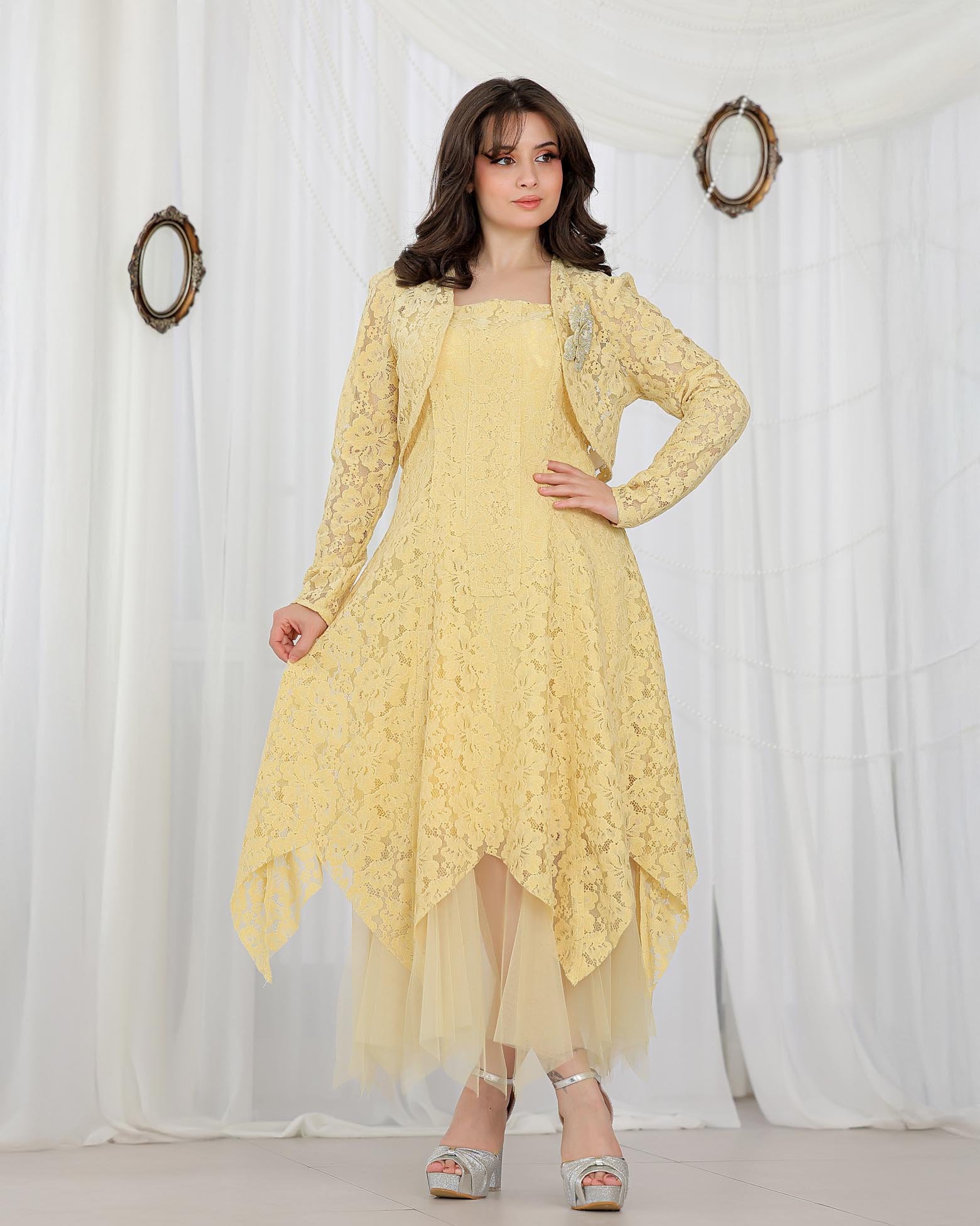 في فساتين العيد، يمنح Butter Yellow إحساسًا بالإشراق والأنوثة، خاصة عند استخدامه في: