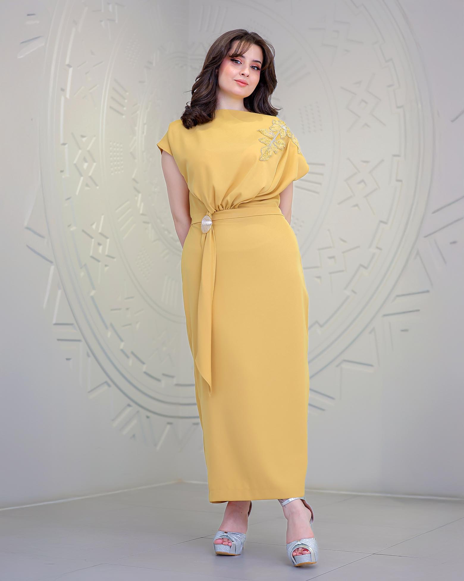 هذا اللون يجمع بين دفء الأصفر ونعومة الدرجات الكريمية، ما يجعله خيارًا أنيقًا وغير صاخب في المناسبات الخاصة.