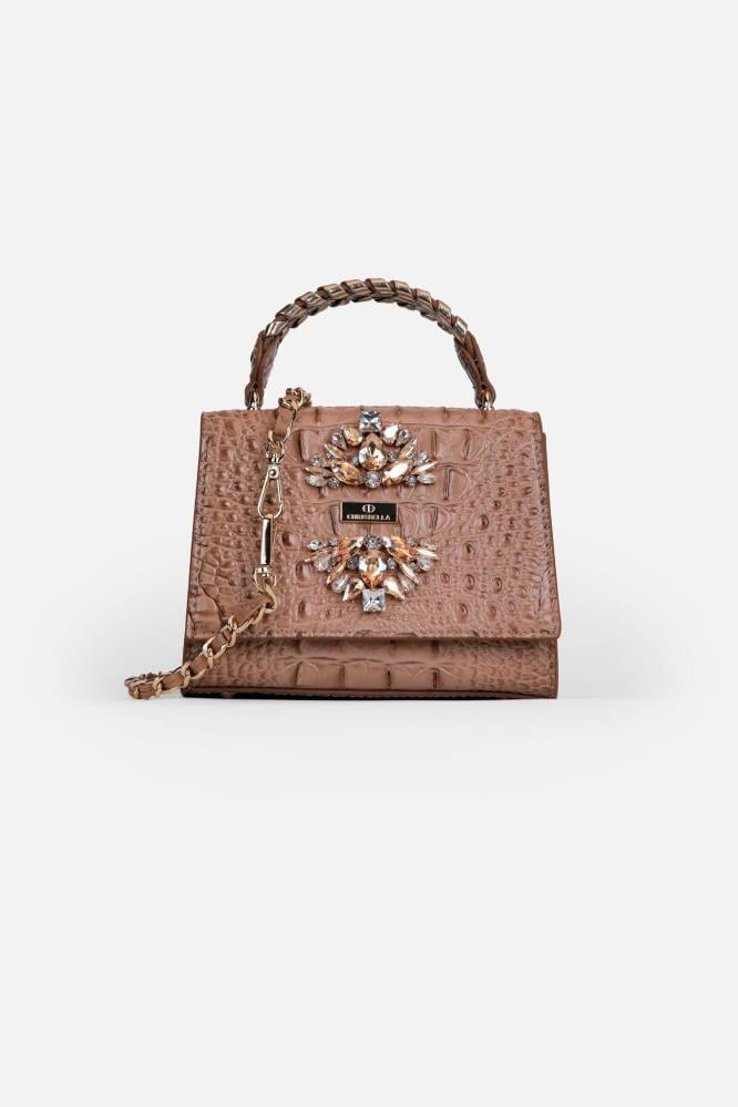 شنطة يد ماركة كريسبلا مرصعة بالأحجار بجلد فاخر لون بيج