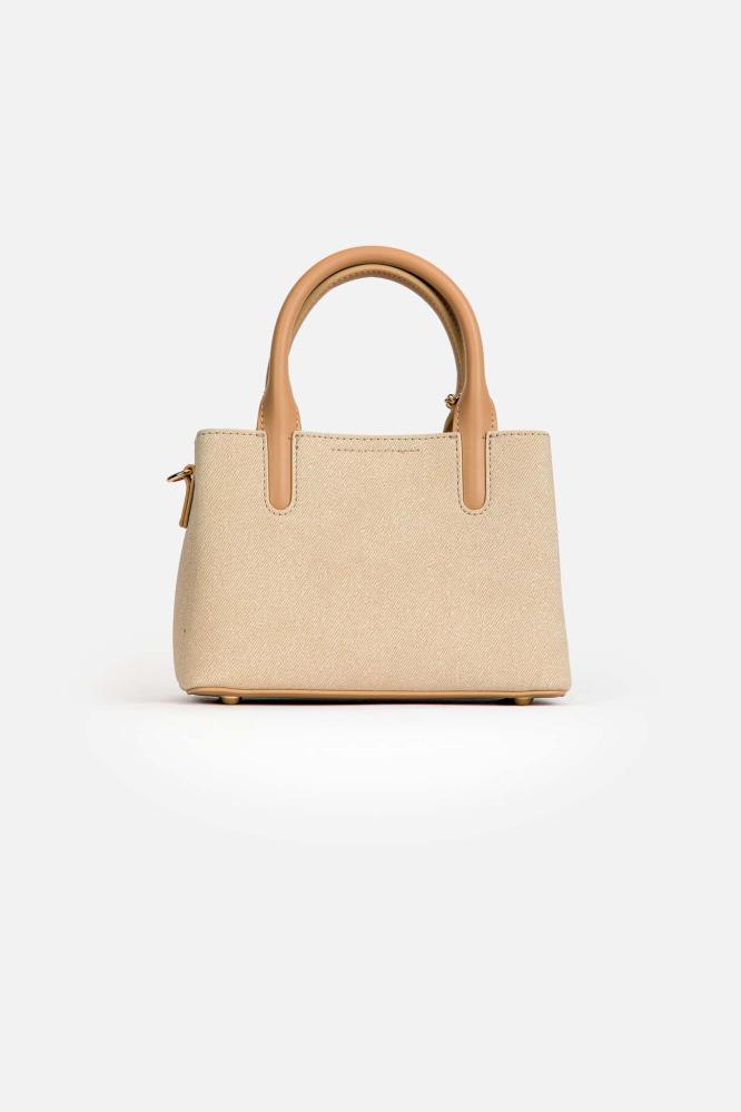 مصنوعة من مواد عالية الجودة تجمع بين الجلد النباتي والملمس القماشي المميز، وتعد خياراً مثالياً للمشاوير اليومية، أو هدية فاخرة لمن تحبين.