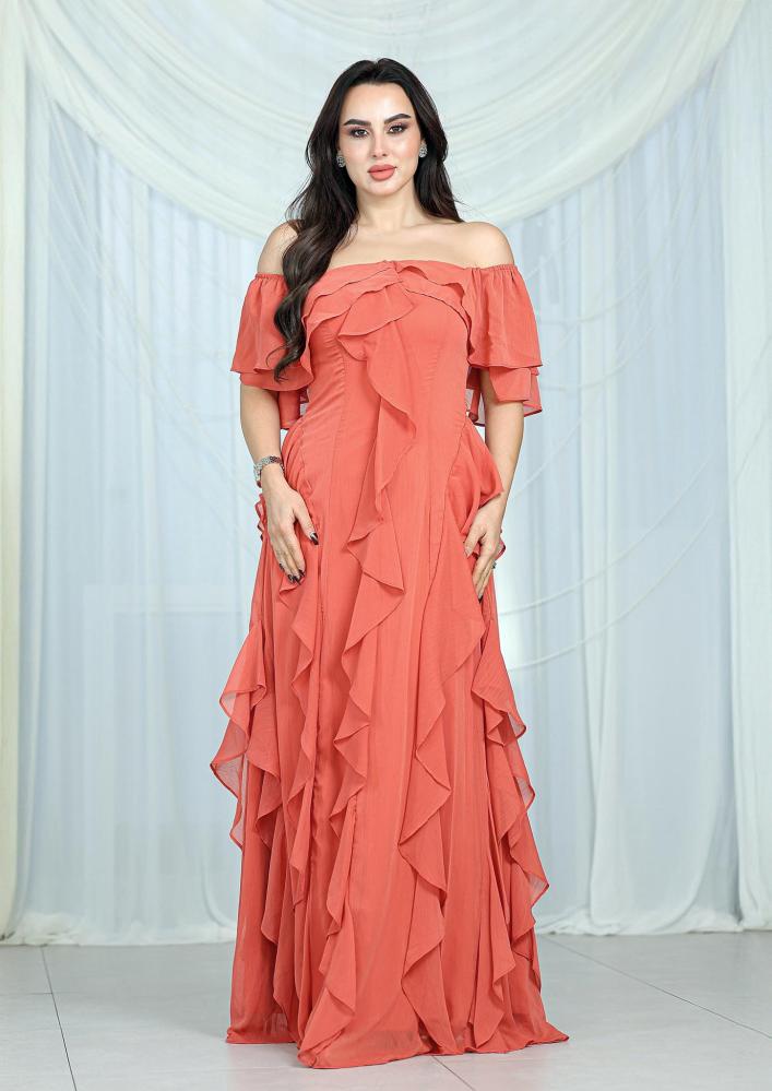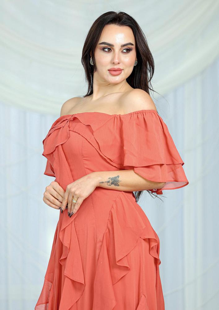 فستان أنيق بتصميم أنثوي ناعم يبرز جمال الإطلالة بأسلوب راقٍ ومريح.